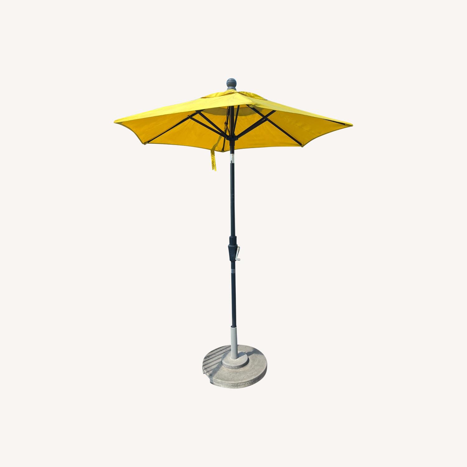 CB2 Yellow Outdoor Umbrella with Pole and Base