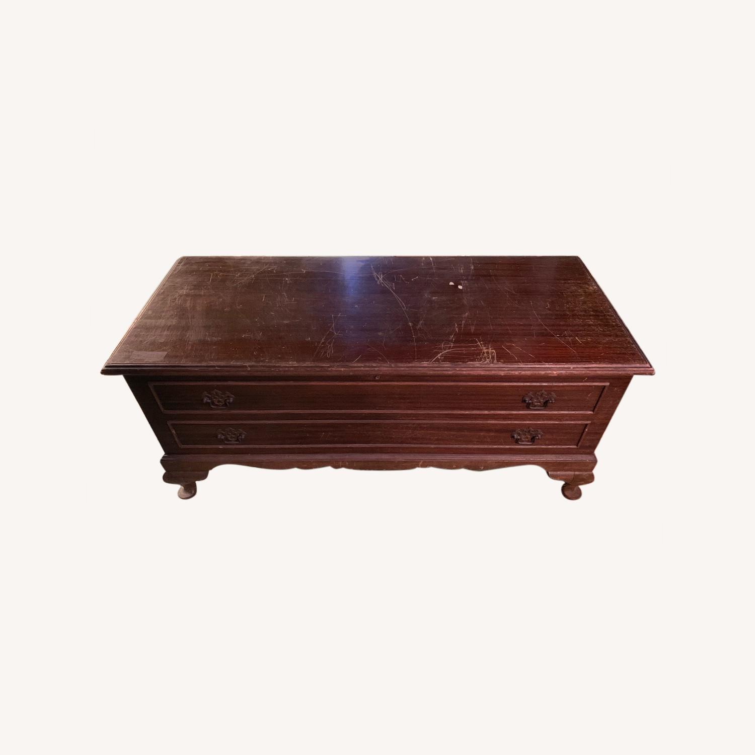 Seller's Notes:This antique/vintage hope chest has been in my husband's family for many years. It is fully cedar lined and has protected family heirlooms of shawls, blankets and bonnets that are several hundred years old. The top lifts up easily by pressing a button on the front hardware. It has been stored in my dry basement for 23 years. I am happy to send additional photos. This beautiful hope chest could serve as a coffee table or side piece in your home.