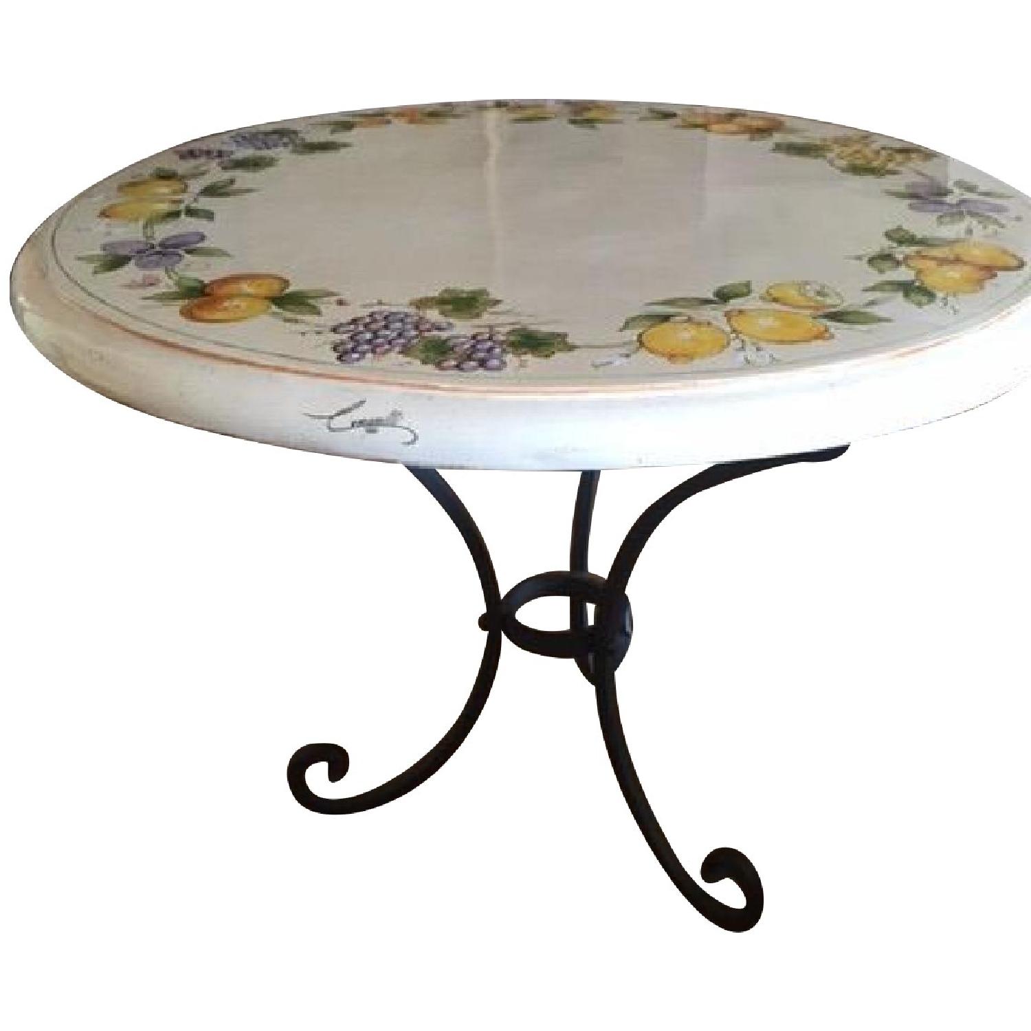 Ceramic Italian Round Table w/ Wrought Iron Stand/Legs