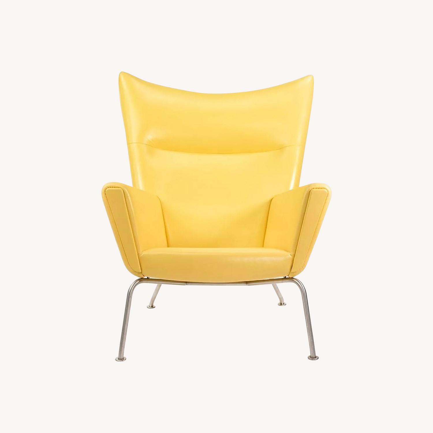 Seller's Notes:Designed by the legendary Danish designer Hans Wegner in 2020, the CH445 Wing Lounge Chair is a stunning example of timeless Scandinavian craftsmanship. Made by Carl Hansen & Søn, this chair combines sleek, modern lines with exceptional comfort — its winged backrest offers both style and support. Upholstered in luxurious yellow leather, it’s a statement piece that brightens any space. This particular chair has been gently used and well cared for, maintaining its vibrant color and structural integrity. Perfect for collectors or anyone who appreciates iconic mid-century design with a contemporary twist.