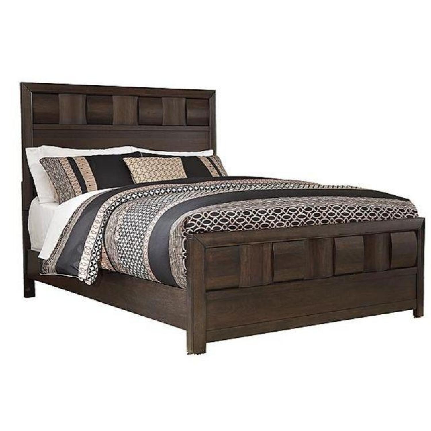 Seller's Notes:"The bed is just Less than 10 months old and in perfect condition!! Talk about style with added dimension. Chanella queen panel bed stands out for its arched profile panel accents and dimensional overlays set in an alternating pattern. Beautifully clean lines, a rich dark finish and a tall headboard design complete this highly contemporary piece. Retail Price Bed: $649.99 The Headboard: Width 63.25'' Depth 1.5'' Height 58.5'' The Footboard: Width 63.25'' Depth 2.75'' Height 24''"