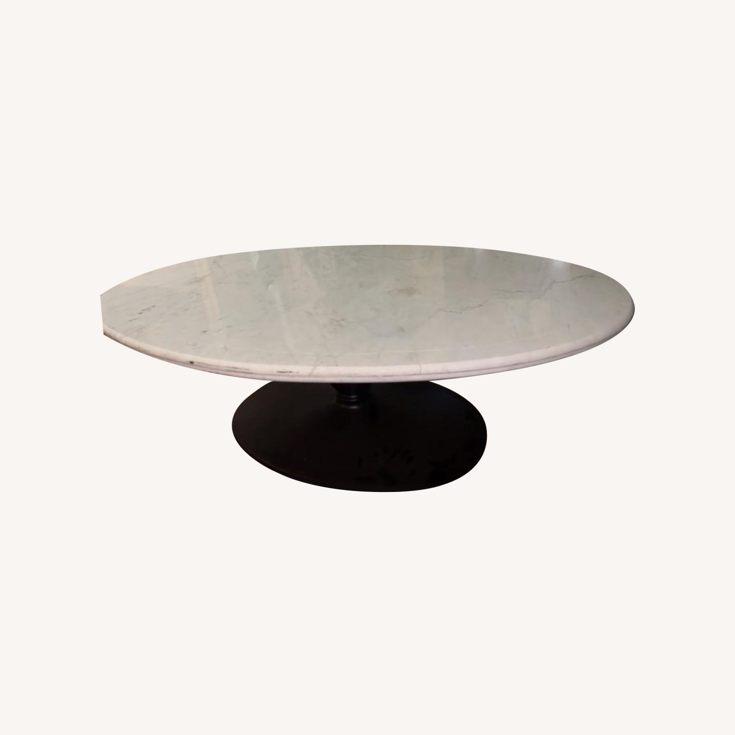 Seller's Notes:This item was unused. Slight cosmetic defect due to poor delivery services. There are faint cracks but nothing that is super noticeable or detrimental to the tables structure! It’s gorgeous Please note there are a few small faint cracks. Will negotiate price. Can be delivered for additional fee. Top is crafted of marble and base is iron. Marble has an inherent beauty with features that naturally appear during the formation of the stone. Variations in the color and veining make each piece subtly unique. Veins in the marble are naturally formed and are not cracks. Mineral deposit is a natural characteristic of the marble and is not a defect. Hand finishing, antiquing & distressing of metal base make each table one of a kind. Differences in texture may give base an uneven surface. Base is hand-hammered to give a rustic appeal. RL