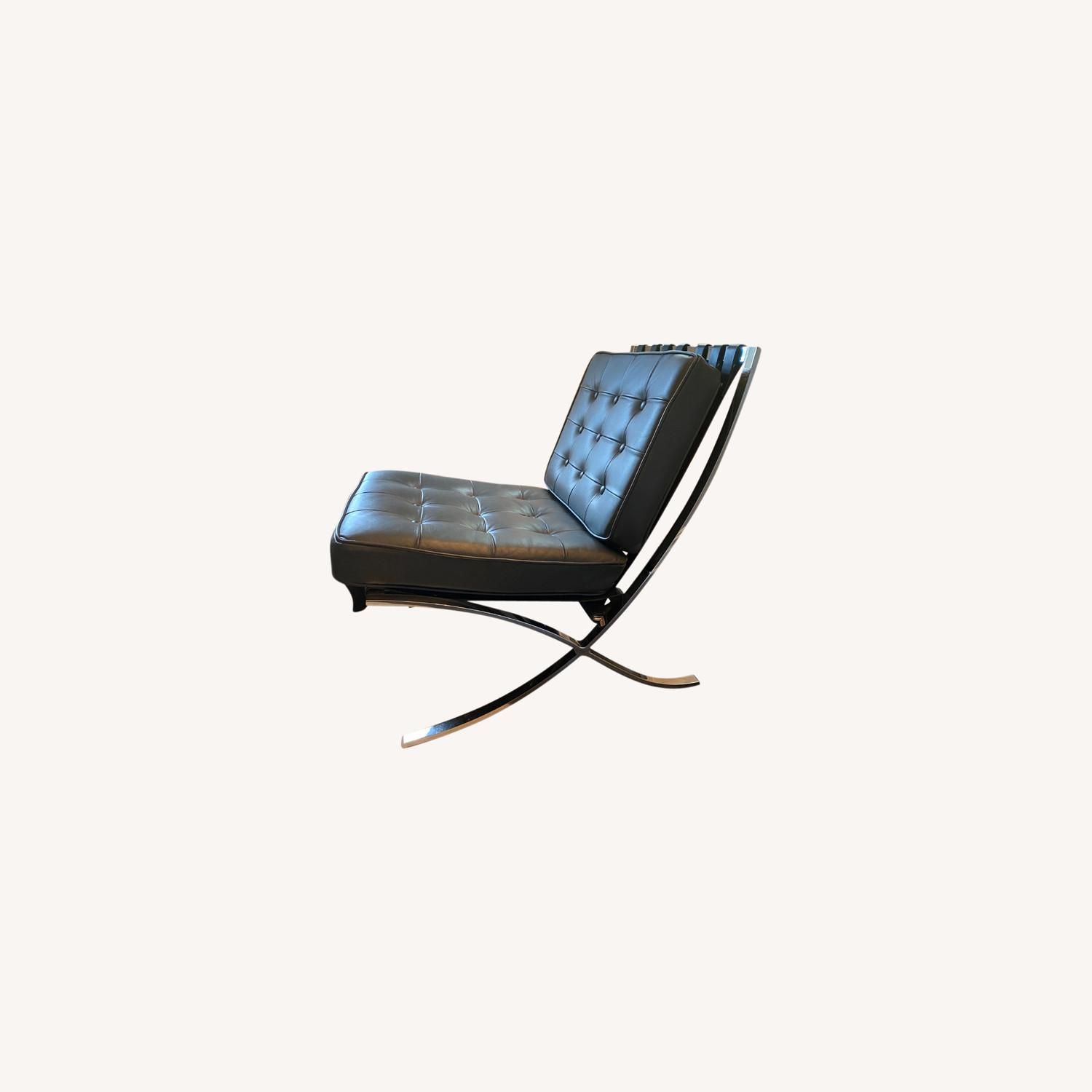 Seller's Notes:Custom made charcoal gray leather Barcelona chairs. Smaller footprint than traditional Barcelona chairs to better fit apartment living. In very good condition. A few buttons have popped off the cushions, so those are flipped to the bottom and not visible. Have saved popped off buttons if you would like to re-affix them. 25"W x 29"D x 30"H Seat Height: 18' Seat Depth: 18"