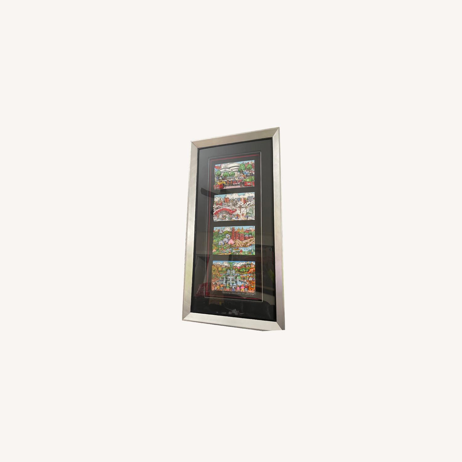 Seller's Notes:SEASONALLY CENTRAL PARK NYC, FEATURING CENTRAL PARK IN WINTER, SPRING, SUMMER AND FALL SEEN THRU THE EYES OF CHARLES FAZZINO LIMITED EDITION 3-DIMENSIONAL SERIGRAPH CREATED BY CHARLES FAZZINO, THE MASTER OF 3-D POP ART. MULTI-LAYERED 3-D SERIGRAPH CONSTRUCTION. HAND-CUT, GLUED, GLITTERED AND ASSEMBLED. PRINTED ON 100% RAG MUSEUM BOARD. SIGNED AND NUMBERED IN LIMITED EDITION. NO TWO PIECES ARE A LIKE. APPROX. SIZE 11X35 ONLY 100 "PR" #6/100 premiere edition (2 layers with more embedded Swarovski Crystals on black background, and signed and numbered in silver marker). COMES WITH A COA FROM FAZZINO... MUSEUM EDITIONS RETAILS FOR $2500 Charles Fazzino: The Master of 3-D Pop Art Charles Fazzino is the most popular 3-D artist in the world today. With over 600 galleries exhibiting his pieces worldwide, he has gathered a loyal following throughout the United States, Europe and Asia. His artwork can be found in the private collections of Sting, Rosie O’Donnell, Michael Eisner, Hillary Clinton, Michael Jackson, Phil Collins, Tina Turner, Justin Tuck, Gwen Stefani, Jerry Springer, Bud Selig, Julia Roberts and many other internationally renowned figures and corporations. As the creator of limited edition fine art silkscreen serigraphs, he is best known for his obsession for bright colors and wonderful detail, the frenetic energy that infuses his work, and a unique hand assembled 3-D layering technique that brings his images to life. Viewers of Fazzino’s work are pulled, voluntarily or not, into the bright and often whimsical scenes, where they fully experience the hustle and bustle of the world around them. Each released piece has a regular edition, a deluxe edition (2 layers with embedded Swarovski Crystals), and a premiere edition (2 layers with more embedded Swarovski Crystals on black background, and signed and numbered in silver marker