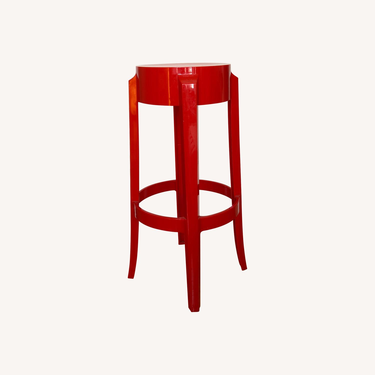 Seller's Notes:Charles Ghost (in Glossy Red) is the stool that mirrors the shape of traditional 19th century seats. The line of the leg is rounded and slightly curled, an icon of the classic stool. It adapts to both indoor and outdoor settings.