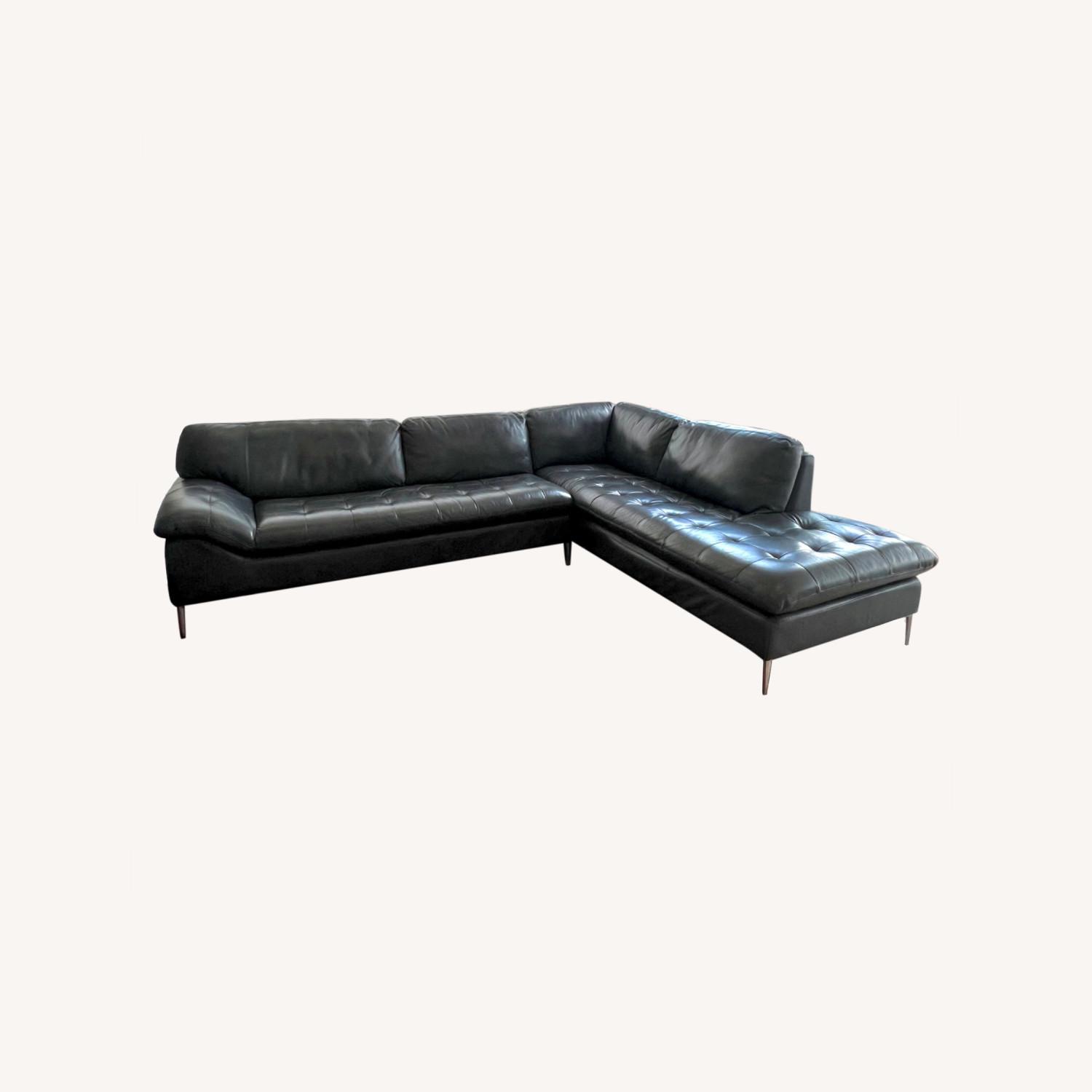 Chateau D'ax Navy Blue Leather Sectional Sofa