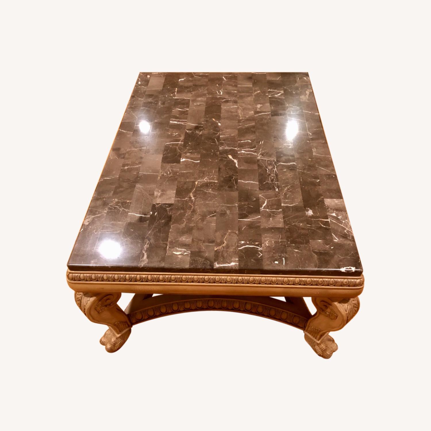 Checkerboard Marble and Wood Coffee Table