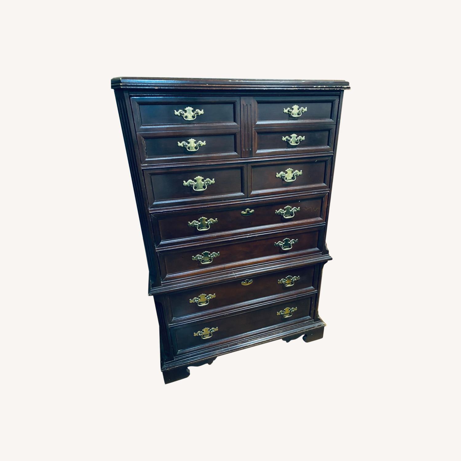Seller's Notes:Features: Bold Cherry Red Finish: The rich, glossy cherry red color adds a contemporary twist to traditional furniture, instantly brightening up your space with a touch of sophistication. Spacious Storage: Equipped with six generously-sized drawers, this dresser offers ample space for organizing your clothes, accessories, and linens, helping you keep your bedroom neat and tidy. Quality Craftsmanship: Constructed from durable materials, this dresser is built to last. The sturdy design ensures it remains a timeless fixture in your home for years to come. Elegant Hardware: The drawers feature sleek, polished handles that complement the dresser’s striking color and provide easy access to your belongings. Versatile Design: Its classic silhouette with clean lines and a smooth finish allows it to seamlessly integrate into various interior styles, from modern to traditional. Whether you're looking to infuse some bold color into your room or need a practical storage solution, this Cherry Red Chester Dresser combines style and functionality with flair. Make it the centerpiece of your bedroom and enjoy both its eye-catching appearance and practical benefits.