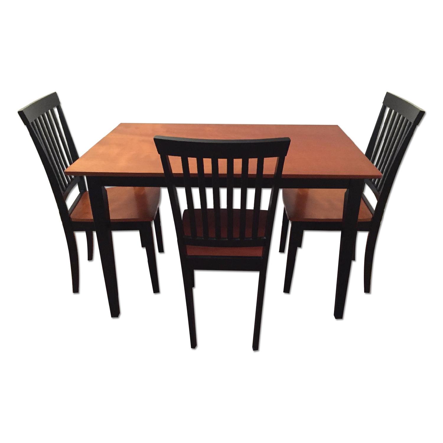 Seller's Notes:Dining room and chairs great for smaller spaces Table dimensions: 47.5lx29.5wx30h Chair dimensions: 16lx16wx37h Beautiful cherry wood finish with black legs - clean look that doesn't require much maintenance Minor scratches that most people won't notice Pet free, smoke free environment Moved to a new apartment so looking to get a new dining set