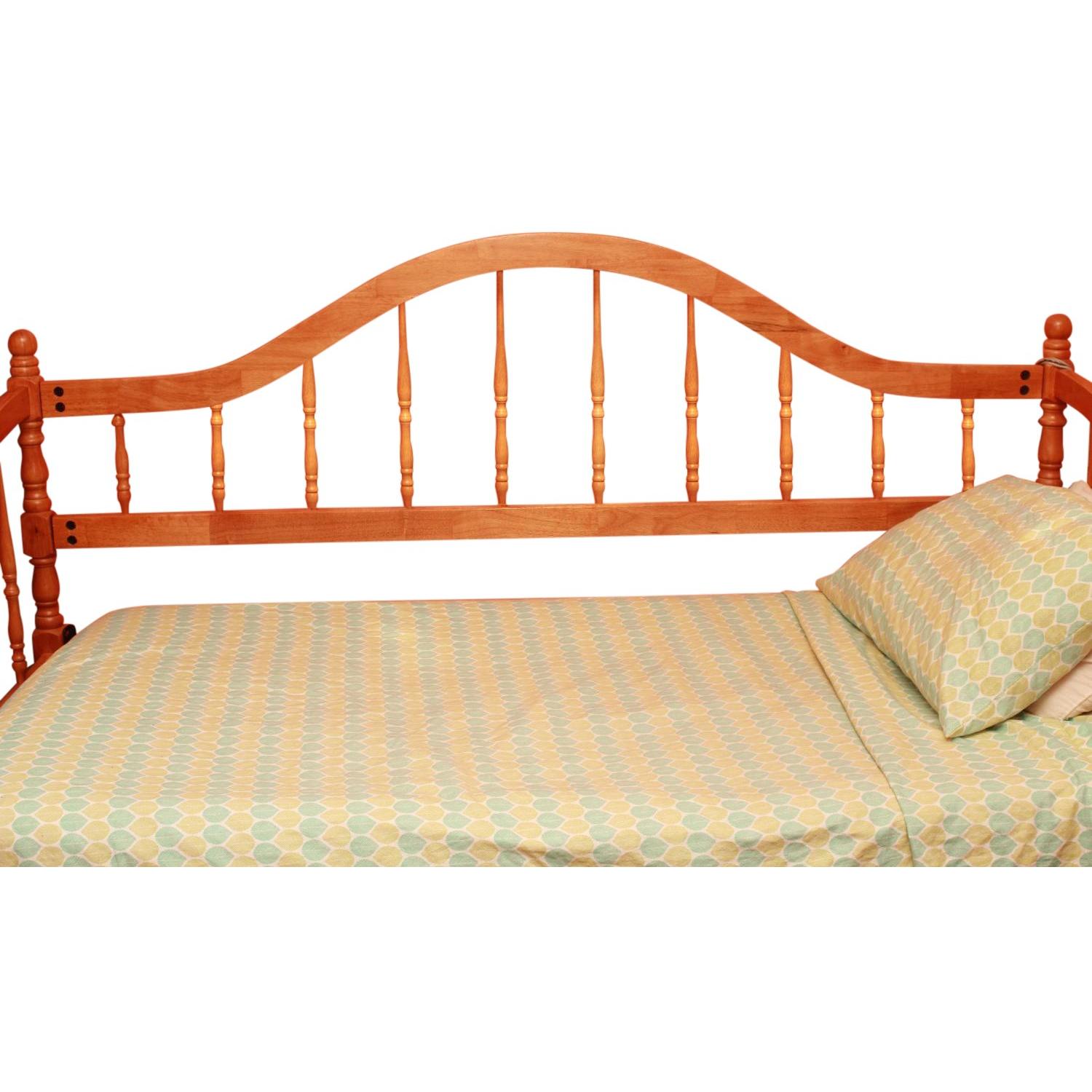 Seller's Notes:This cherrywood daybed is in flawless condition, and has been in a non-smoking home. Solid wood construction. Cleaned and disinfected! Specifications: 81" L x 38" W x 48"H (from extreme top curve) Bed frame to the floor = 13" (providing ample space for under-bed storage) Front bedpost to floor = 29" Back bedpost to floor = 38" Please contact me for pickup/drop-off arrangements. Price negotiable! (Mattress not included)