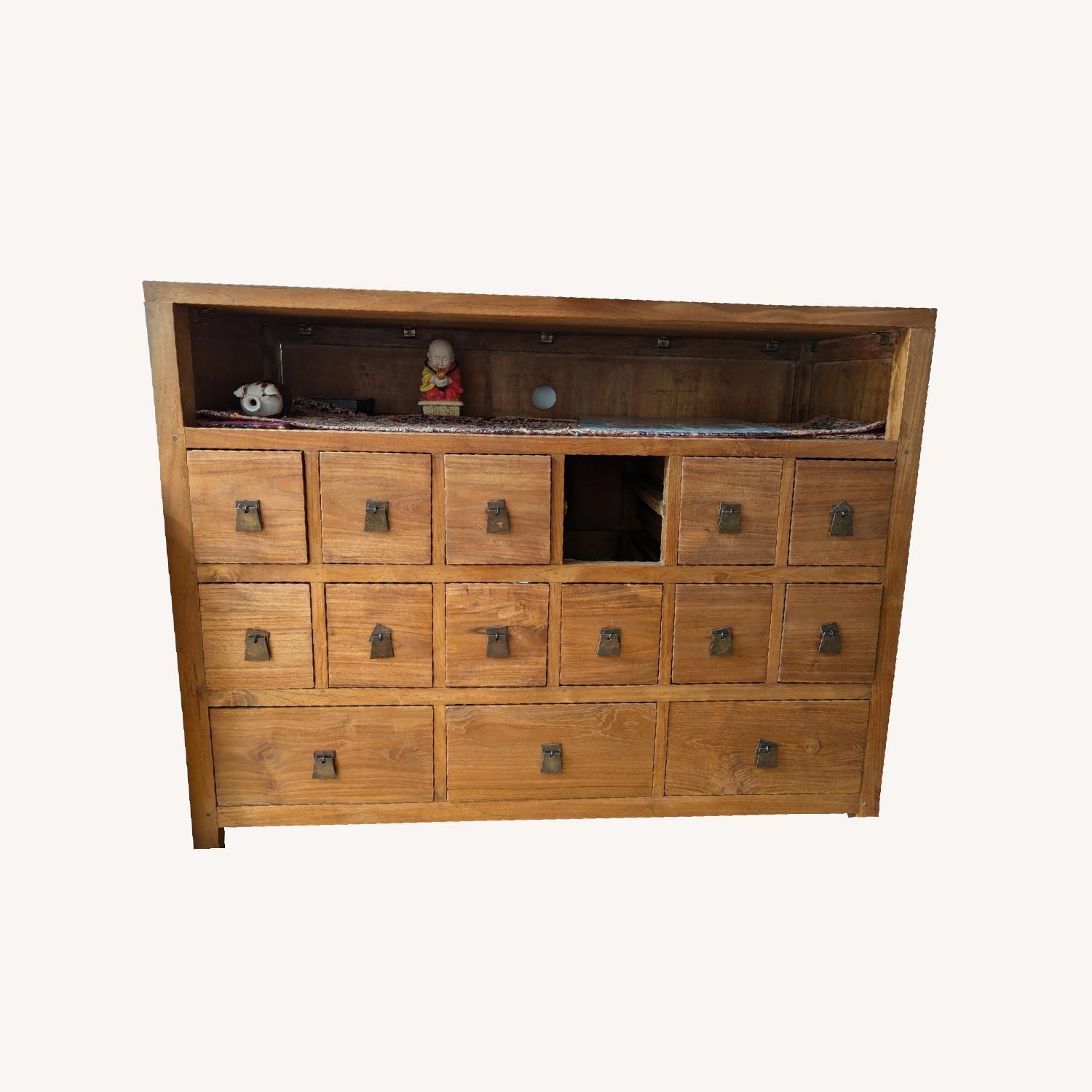 Seller's Notes:Well maintained multi utility chest of drawers. Solid wood, ethnic style. Bought in HK