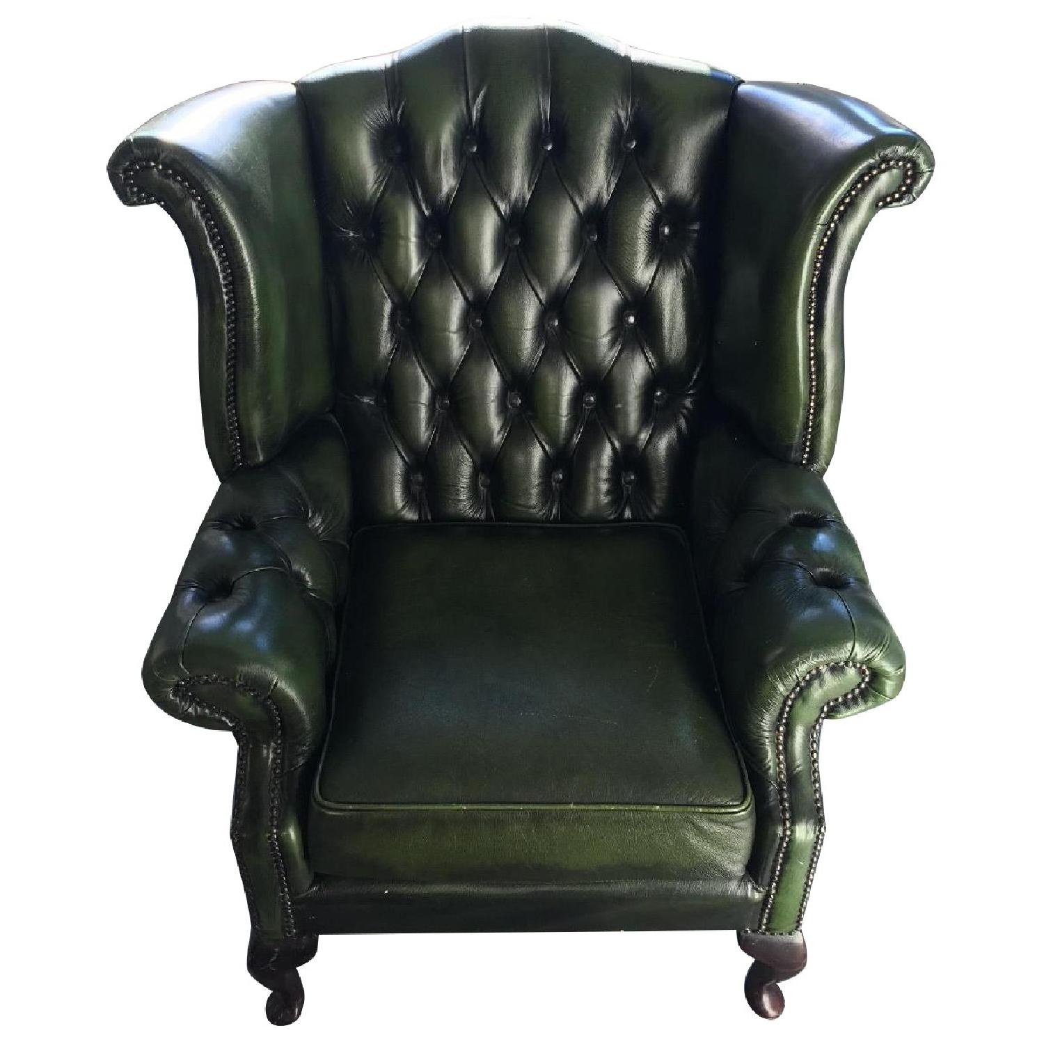 Chesterfields of England Leather Chesterfield Queen Anne Wingback Armchair in Forest Green