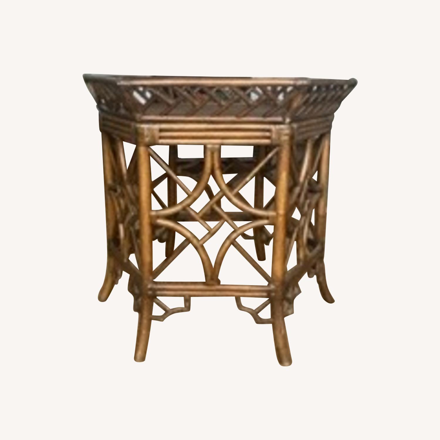 Seller's Notes:The piece has color variation of bamboo but I do not think it is discoloration. The top is detached from the base and was purchased that way.