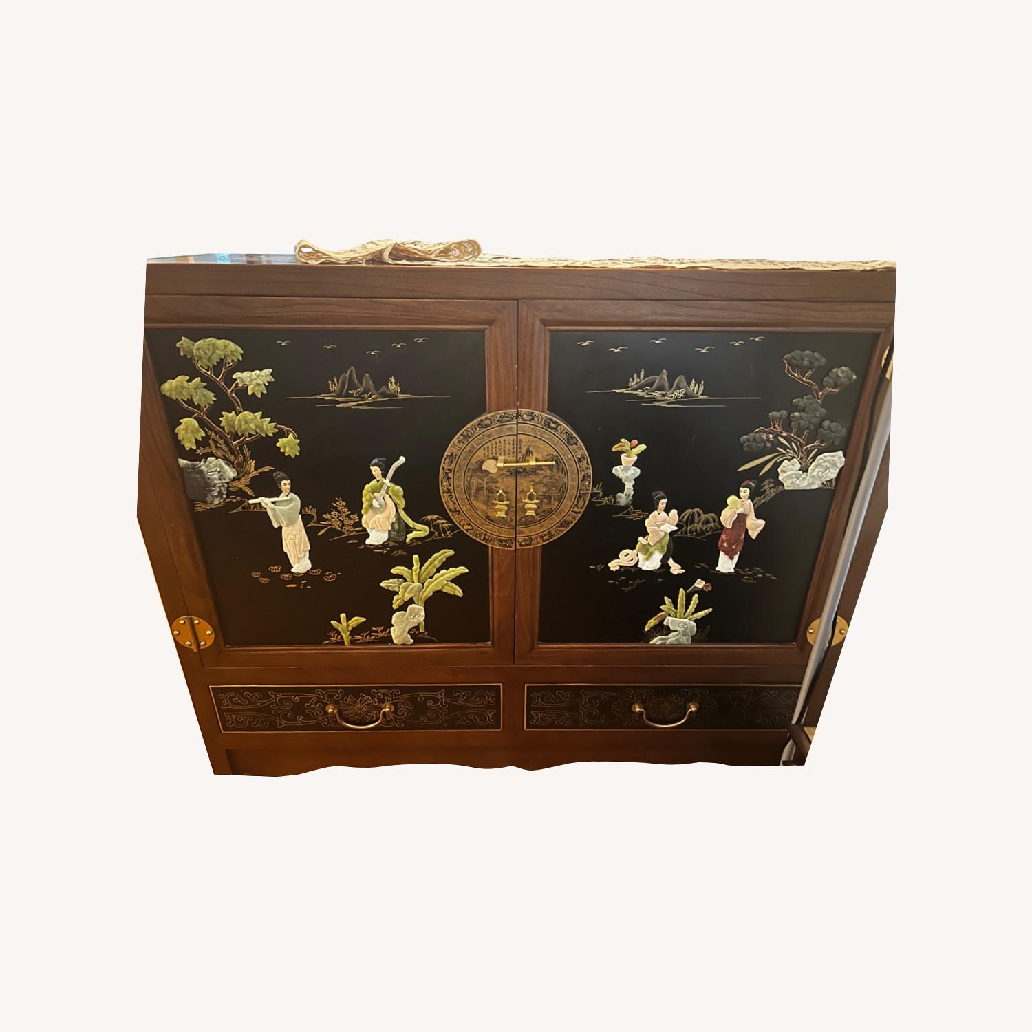 Seller's Notes:Antique Chinese Console/Cabinet with Jade Carving Welcome to a unique opportunity to own a stunning piece of history: an **Antique Chinese Console/Cabinet** adorned with exquisite jade carvings. This remarkable furniture piece is not just a functional storage solution; it is a captivating work of art that embodies the rich cultural heritage and craftsmanship of traditional Chinese artisans. Imagine this console/cabinet gracing your home, serving as a conversation starter and a focal point in any room. Its elegant design, combined with the intricate jade detailing, reflects a timeless beauty that transcends trends and styles. Whether you are a seasoned collector of Asian antiques or simply looking to enhance your living space with a touch of sophistication, this cabinet is sure to impress. Crafted from high-quality wood and featuring jade carvings that symbolize purity and nobility, this piece is a testament to the artistry and dedication of its creators. Don’t miss your chance to bring home this extraordinary console/cabinet, a perfect blend of functionality and aesthetic appeal that will enrich your environment for years to come.