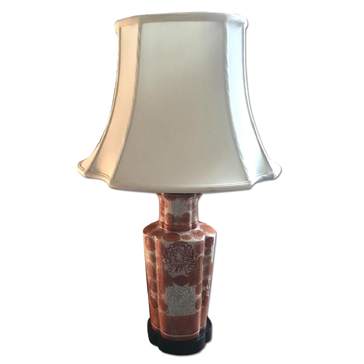 Chinese Porcelain Early 70's Lamp w/ Pagoda Silk Shade