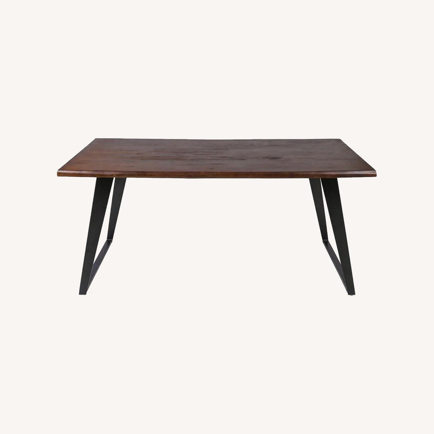 Seller's Notes:Christopher Knight Home Acacia Wood Dining Table Indoor 6 seat table Wear/cracks/scratches as pictured Black iron legs 34.5"deep, 71" wide, 29.5" high