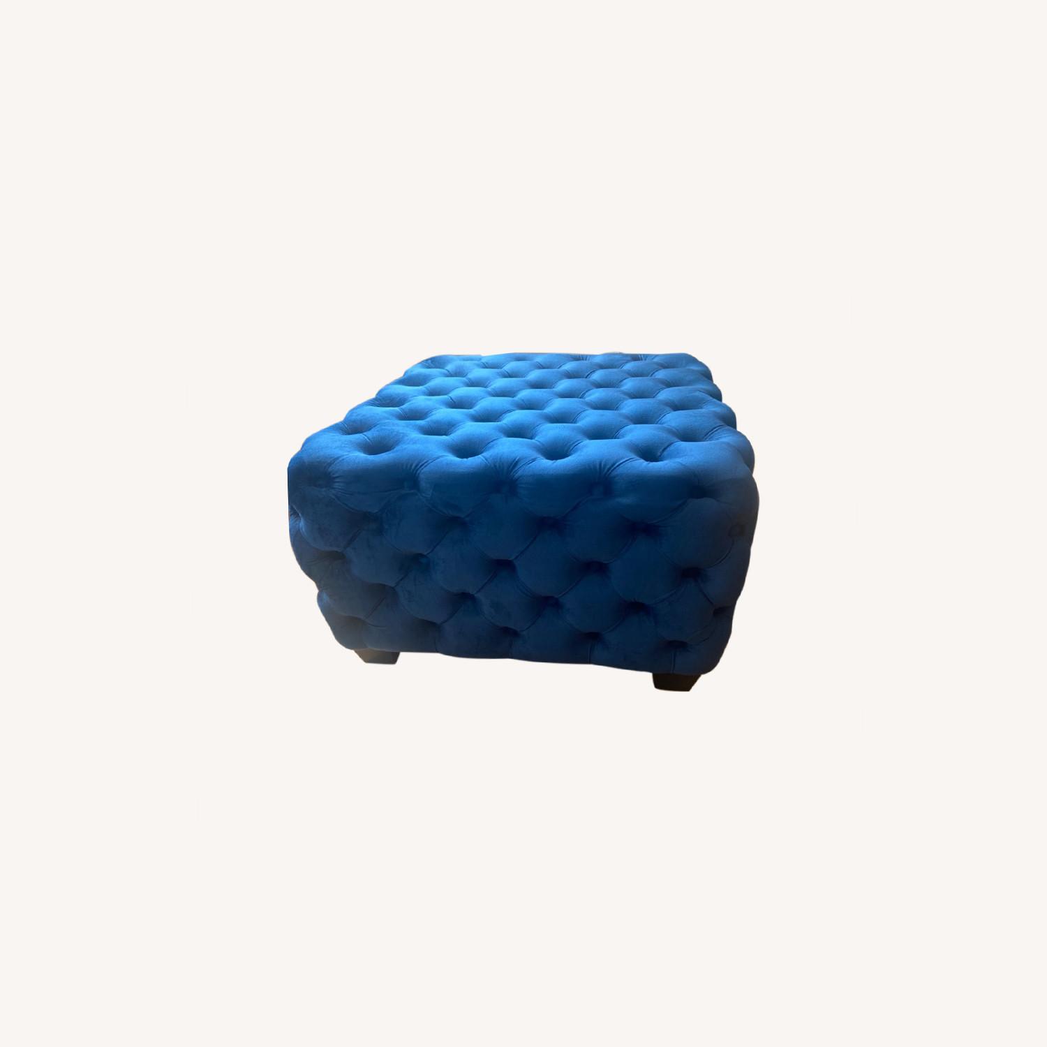 Seller's Notes:Beautiful velvet blue ottoman just needs a little dusting great condition. Selling couches as well to go with ottoman. 18.5 in height