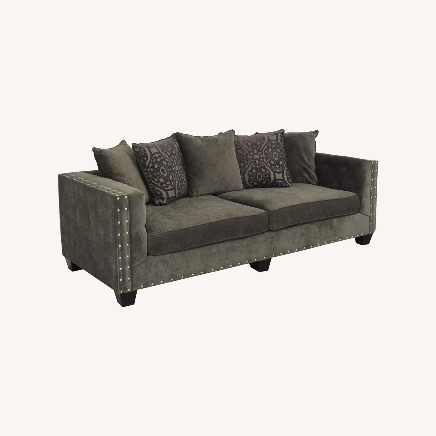 Seller's Notes:This sofa is extra deep with many throw pillows giving it an inviting feel. Depending on warm or daylight lighting the shade varies between a dark grey to a great with a slightly olive tint. No pets or young children in the home so this sofa is in great shape.