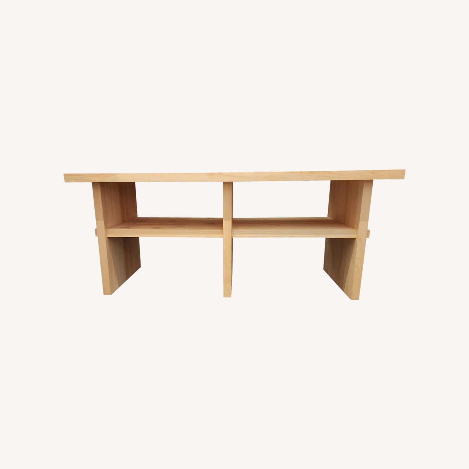 Seller's Notes:Preowned, 1 Citizenry Hinoki Wood Bench in natural color. This multi-use, minimalist bench is hand made in Japan form Hinoki Cypress wood. Item is in good condition, with daily wear and tear. Photos are representative of the imperfections that are throughout bench from normal use.