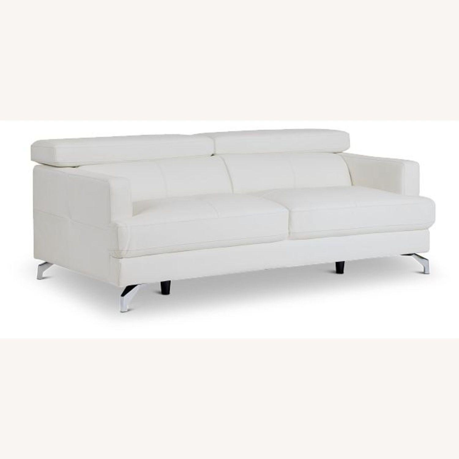 The Marquez White Micro Sofa is a stylish addition to any modern living space. Its trendy Miami Modern style and sleek white color add a touch of sophistication to your decor. This sofa features a headrest function, allowing for customizable comfort and support. The frame is made of durable engineered wood, ensuring long-lasting durability. The upholstery is made of high-quality polyurethane, while the cushions are covered in soft microfiber material for added comfort. Elevate your living room with the Marquez White Micro Sofa.