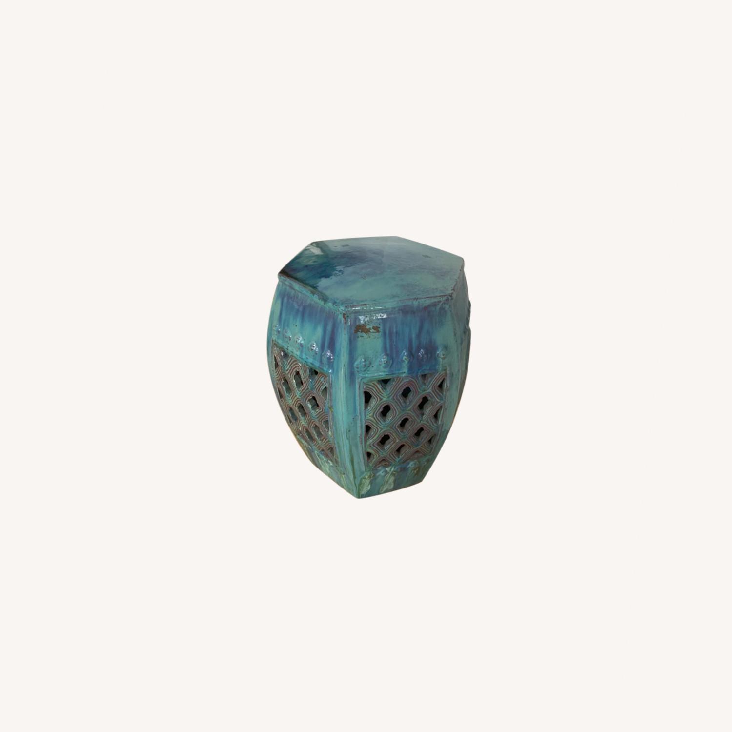 Seller's Notes:Use it as a traditional garden stool, or a side table indoors or out. Crafted of glazed ceramic with pierced details.