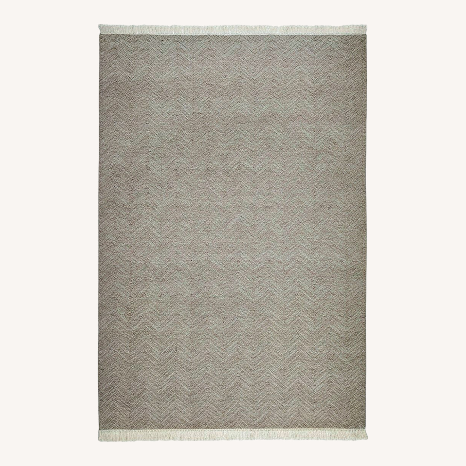 Handwoven in a classic herringbone pattern, this rug is designed for durability in both indoor and outdoor spaces. The fringed ends add subtle texture and visual interest, making it a versatile piece for patios, living rooms, or entryways.