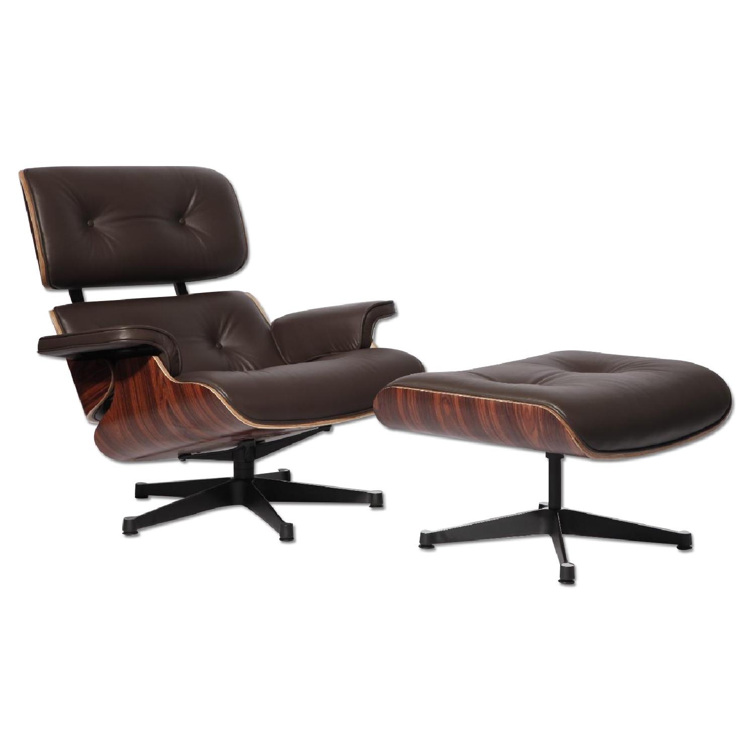 Seller's Notes:"The Eames Lounge Chair replica is one of the most famous mid-century modern pieces. Our Eames lounge chair replica is a Vitra replica. Its form and functionality have made it one of the most sought after pieces in modern history. This iconic design can be found in popular films, television shows, businesses and in thousands of residences across the globe. Its original designers, Charles and ray Eames, had intended to give it the look and feel of a well worn first Baseball mitt. It led to the creation of the Manhattan Home Design Lounge Chair and Ottoman, featuring your choice of multiple leather finishes, high density cushions and imported veneers. Whether you are craving that Mad Men look, or are looking to outfit your living room with a modern design, the Manhattan Home Design Lounge Chair is the right choice for you. Specifications: What makes the Manhattan Home Design Lounge Chair so special? This premium Manhattan Home Design Lounge Chair is the creme de la creme when it comes to style and comfort. Each of our leather options offer an incredibly supple texture, and develops a wonderful softness over time. Knowing that it will only age, like wine makes the lounge chair a brilliant investment for your home or office. Premium Manhattan Home Design - Eames Lounge Chair Replica features: Upholstered in your choice of top-grain eco-leather, premium Italian leather, and 100% aniline leather imported from Italy. Over the years we have maintained excellent relationships with our supplier and have an extensive supply of leather finishes and colors. All parts of the chair are made with the same leather grade option you choose Braided thread used with Lockstitch (stitch type #301) ensures piping stays in place and seams are long lasting Our plywood veneer is FAS American Timber. FAS certified means that they are the best cuts from the log with minimal knots. These are sourced exclusively from USA, Canadian and Brazilian companies As specified by the original design, the veneer features 7 ply's of cross-grained engineered wood and is Kiln dried to prevent any sort of warping or cracking The veneer is finished with a final application of Italian Lacquer protecting the wood and giving it the most natural look possible. After 4 coats have been applied, the color will not fade over time PU-Injected memory foam cushions are wrapped with a synthetic silk. This results in an extremely comfortable chair with the highest level of durability Cushions are removable, as per the original design Silicone shock mounts underneath the arm connect the back and base of the chair allowing for flex. Silicone provides for the optimal amount of flexibility and longevity Standard Vitra-style cast base and back braces come in powder-coated black with a high polish bright aluminum trim Chair features 360-degree swivel Little to no discernible difference between our replication and the original design. GET FREE GEORGE NELSON BALL CLOCK WITH IT!