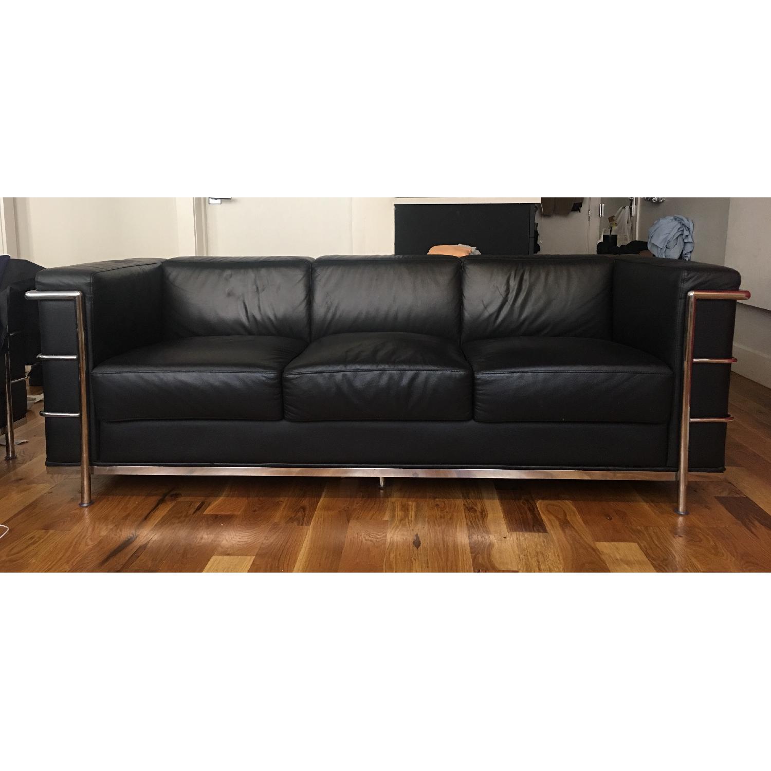 Classic Mid-Century Modern Black Leather Sofa