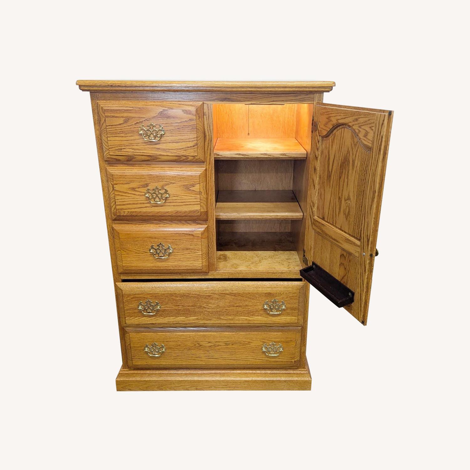 Seller's Notes:Solid oak with 5 drawers and lighted cabinet.