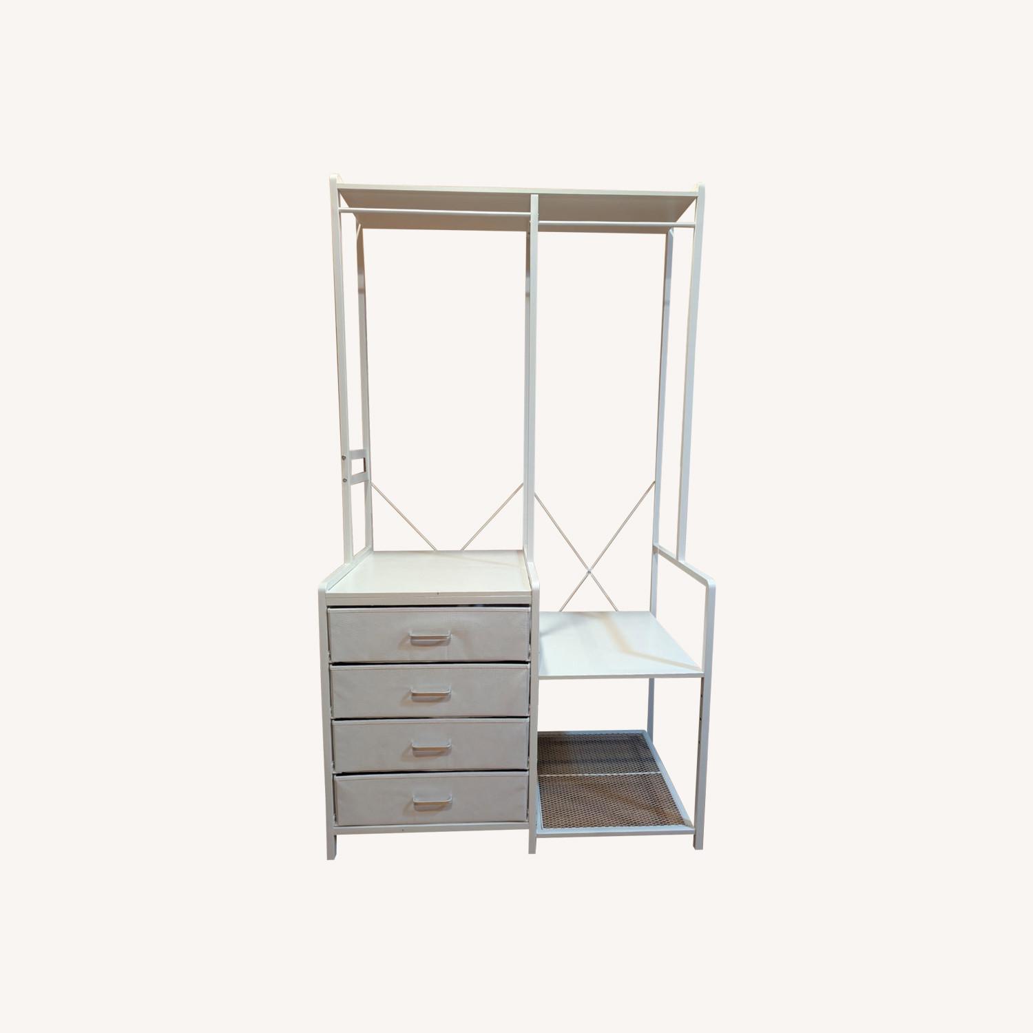 Seller's Notes:This item is brand new and assembled! I bought the unit, assembled it, and realized that it does not fit in my closet - but maybe it will fit in yours. It is in perfect condition, never used. 👚Multifunctional Clothes Rack: The clothes rack has a total of 5 different types of storage space - 4 large drawers, 3 storage shelves, 1 t-shirt hanging rod, 1 long dresser/coat hanging rod, and 1 top storage shelf, providing a variety of storage methods. 👗Garment Rack with 4 Fabric Drawers: Compared with wooden drawers, fabric drawers are easier to install. The garment rack has 4 large fabric drawers of 19.7" x 19.7" x 5.5", which provide private space and a large storage capacity and are suitable for storing underwear, socks, pants, and other small items. 👢Adjustable & Reversible Closet Organizers: The clothing rack is reversible; you can choose to install the drawers at left or right according to your habits. And the storage shelf on the other side is height adjustable for stacking clothes, storage boxes, or even shoes, letting you place items flexibly. 👒Small Clothing Rack with Charging Station: Small clothing rack (39.4" x 19.7" x 71" ) is a compact size; it's perfect for small spaces, ideal to place beside the bed; the charging station with 3 outlets and 2 USB ports is convenient for charging your telephone or iPad. Attached 2 additional hooks can be used to hang accessories like hats, scarves and belts.