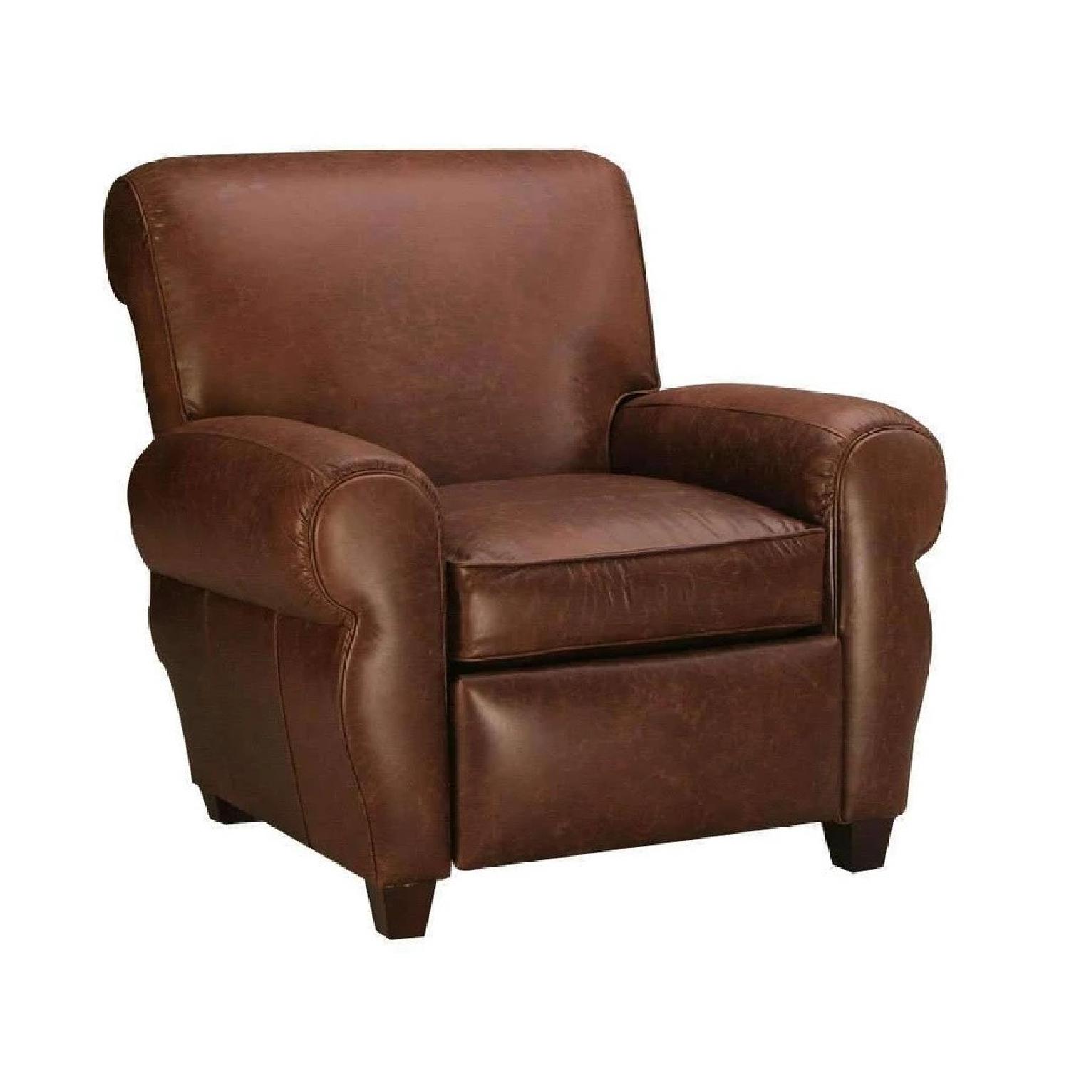 Seller's Notes:Leather recliner hand-crafted in North Carolina. 100% top grain leather. Kiln dried hardwood frame. Multiple reclining positions. Very comfortable and in excellent condition - was used very infrequently in a house with no pets, no children and no smoking. We love this leather recliner, but are redecorating our family room and it doesn’t fit into our new design. Originally purchased 4 years ago for $1,600. Dimensions W38.5" x D42" x H38"