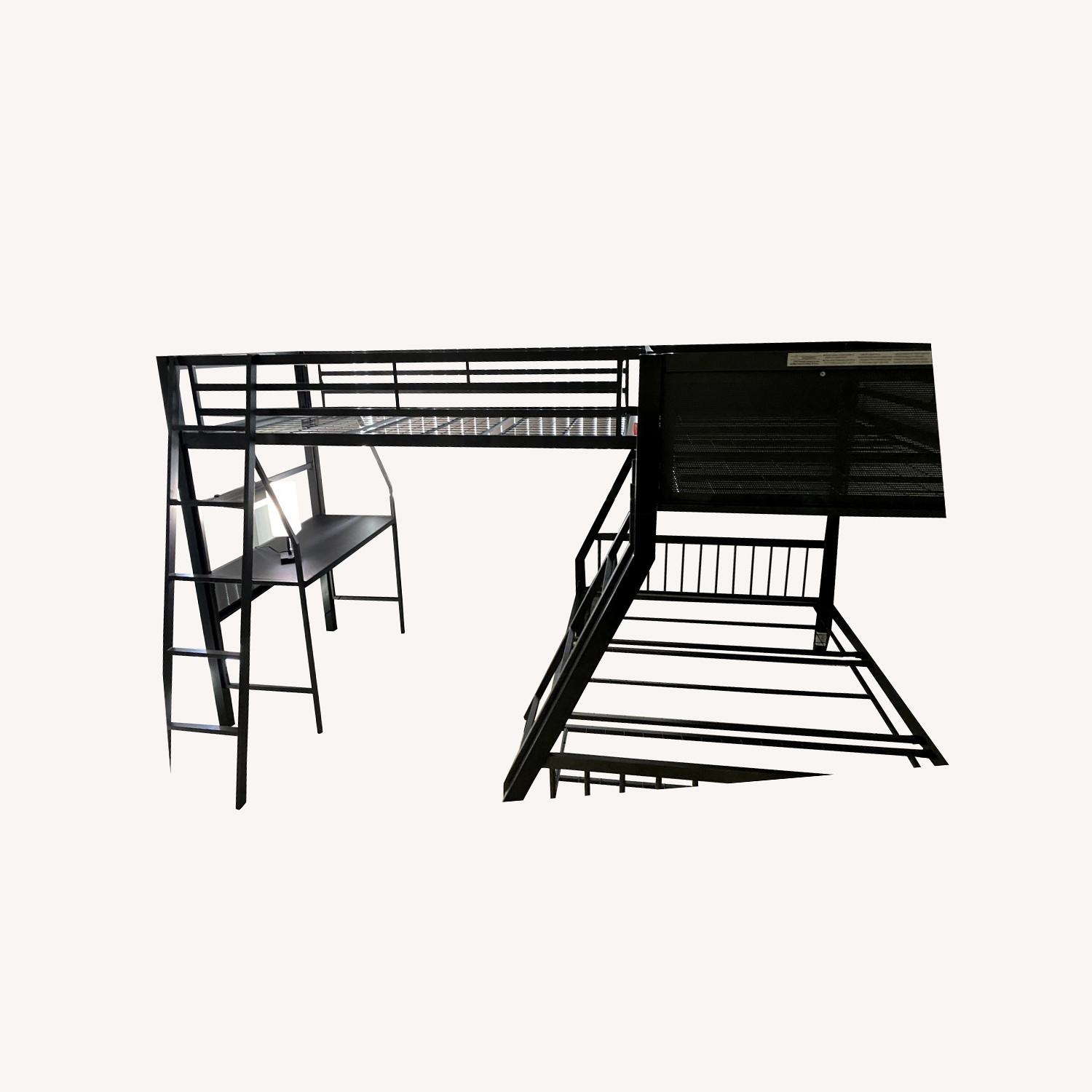 Seller's Notes:Triple bunk bed with desk and ladder. Relatively new bought 6 months before listing so it has not been used. There is two twins beds at the top and one full at the bottom. Item long longer needed due to moving with more rooms and need individual beds simply. I do however need to have these sold before June 5th due to moving states so I can't be here when Item is purchased.