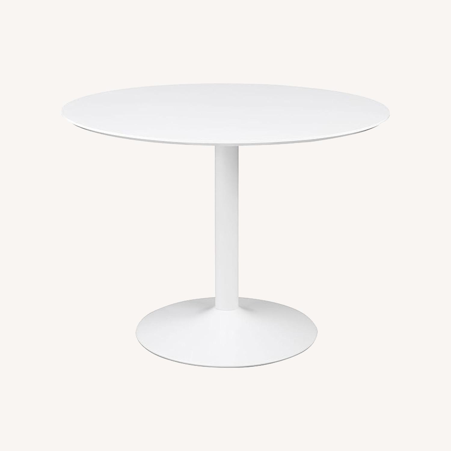 [Perfect for Small Spaces] Designed with efficiency in mind, this pedestal kitchen table provides a spacious white tabletop while maintaining a compact footprint. The neutral white dining surface brightens up cozy spaces like apartments, breakfast nooks, or open-plan kitchens.