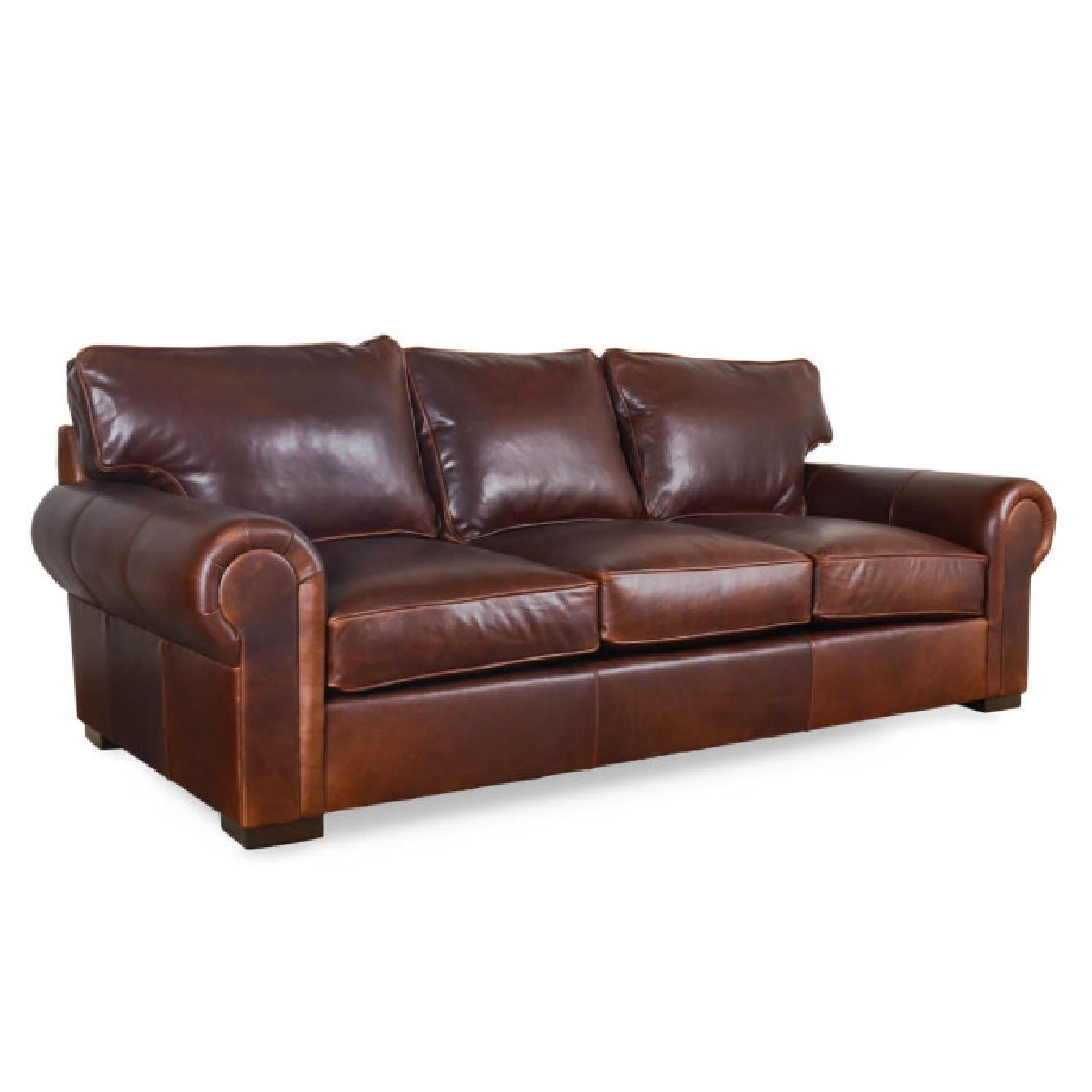 Seller's Notes:90"L x 42"D NEW Lexington Sleeper Sofa, 3 cushions, 3 back pillows, Air Dream Queen Mattress LEATHER: M&G - Telluride "Brown"