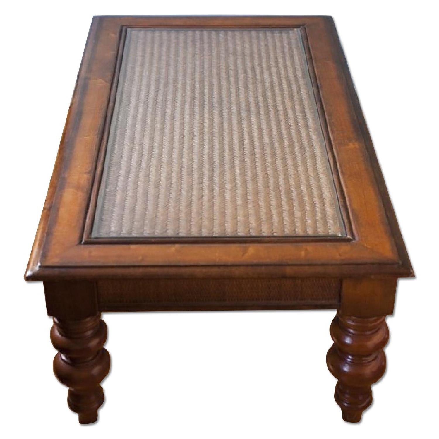 Seller's Notes:Larger coffee table- L:50" W: 29" H: 19" 2 matching end tables - L: 26" W: 23" H: 24" They're in good shape with very minor dings - mostly from us being unable to let go from move to move in the past couple of years. Sturdy and good looking with beautiful details.