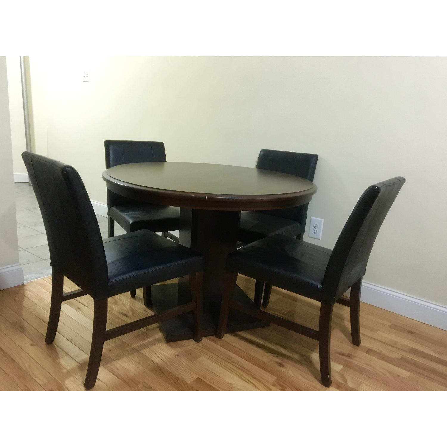 Seller's Notes:Minor scratches on one side of the table. Comfortable leather like chairs.