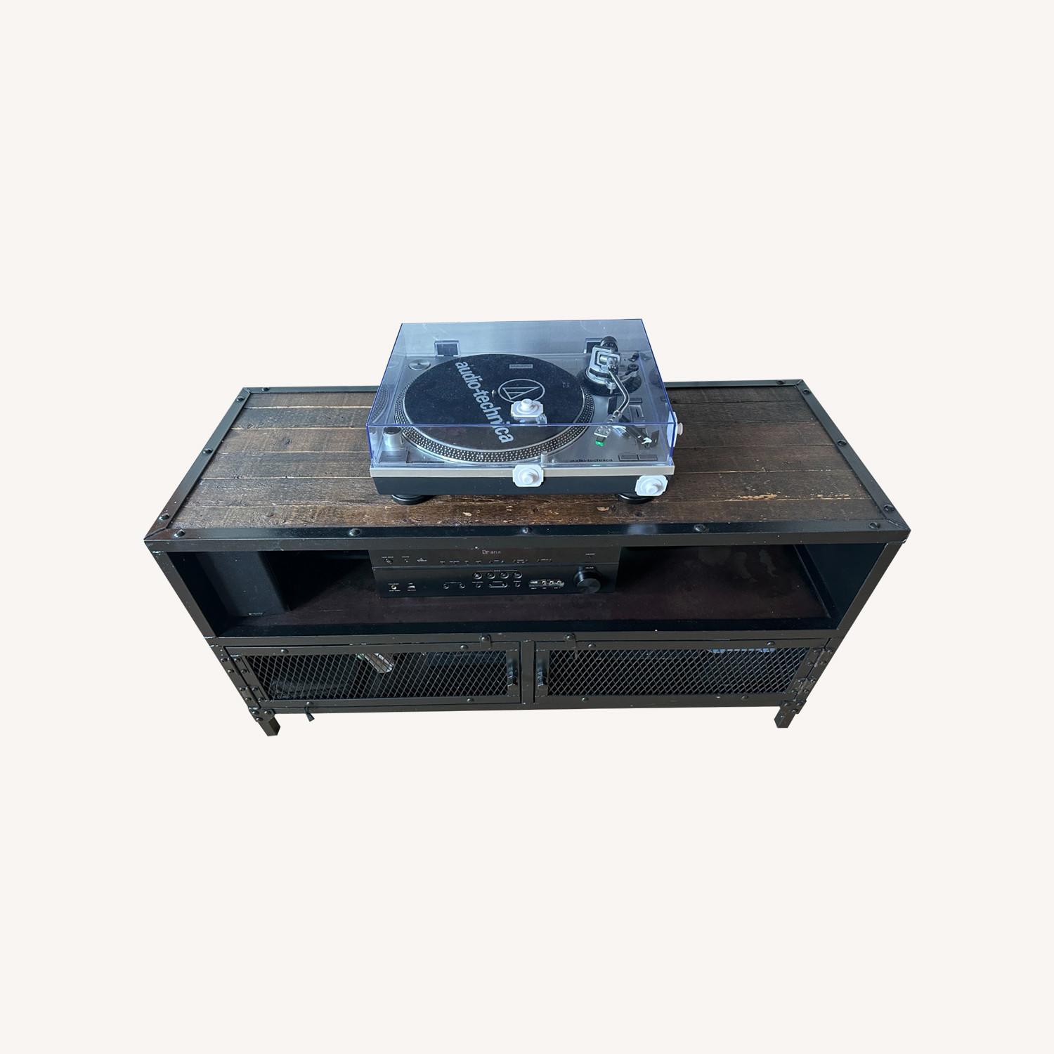 Seller's Notes:Purchased directly from Combine9. Made from steel and reclaimed wood so it is extremely sturdy. The main blemish is the reclaimed wood on the top has some peeling. I considered staining the wood but if you're planning to put any objects on top (e.g., a tv) it's not very noticeable.