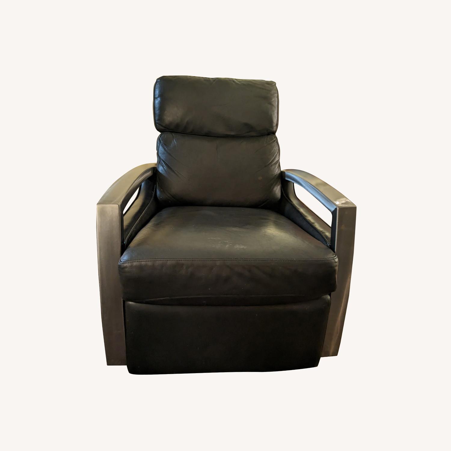 Seller's Notes:A black leather and metal chair purchased from Bloomingdales that's perfect for any apartment living room. Comfortable and compact, it's great for reading, watching TV, cuddling with pets and kids, or taking a nap. Expands to 50 inches when reclined.