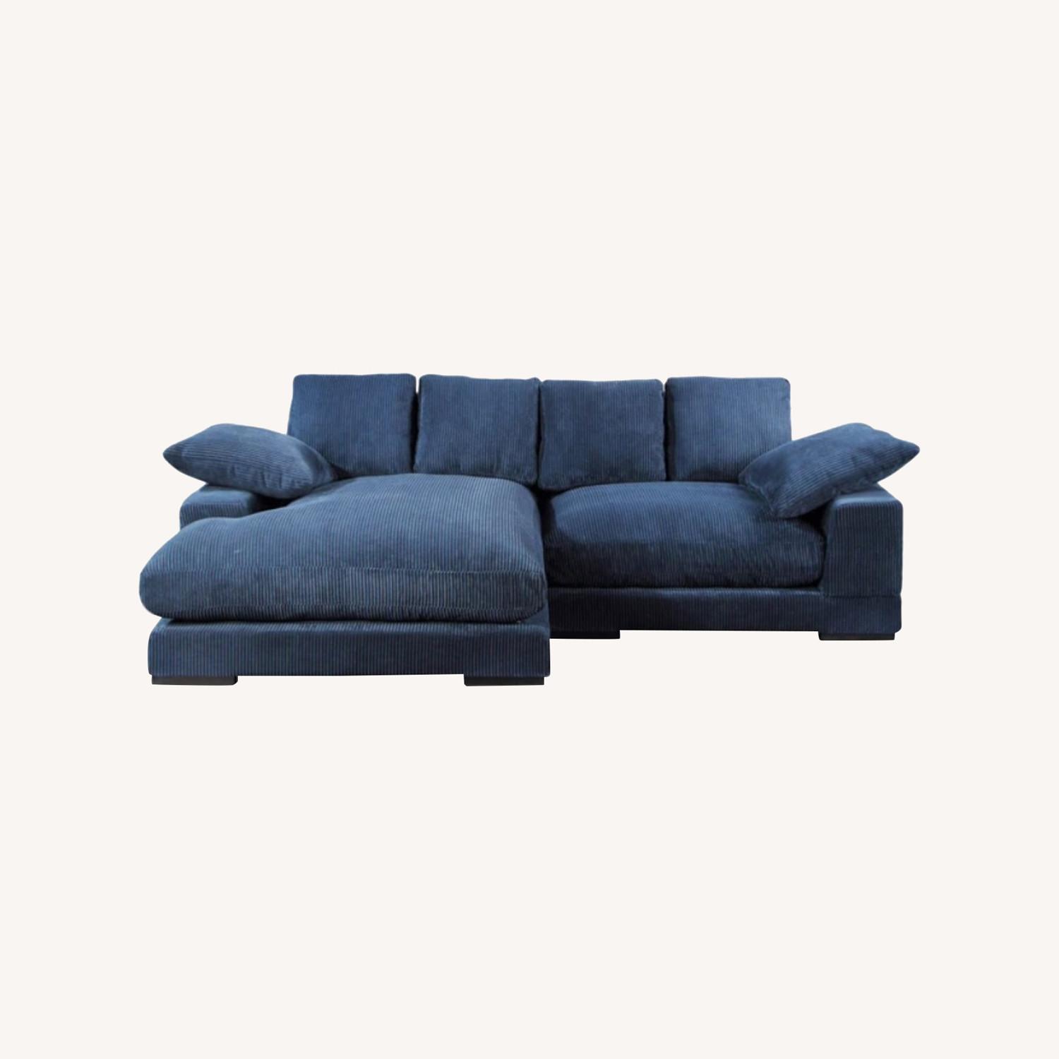 Seller's Notes:Perfect for movie nights, overnight guests, or just lounging around. Can easily fit four (and probably five) people. Pillow cases come off, making it easy to wash/clean. Super sturdy. Sink into the luxurious cushions of the Remy Sofa to experience ultimate comfort and relaxation. With its universal facing options, change between a left hand and right hand facing chaise whenever you feel like it! Clean lines and soft pillows make this sectional the perfect addition for your living room. Whether you are entertaining guests or need a long-deserved nap, the Remy's wide sectional chaise and deep cushions make the most of your space. 100% Polyester Corduroy, Solid Eucalyptus Wood & Plywood Frame Deep, soft seating Extra wide chaise for lounging Frame: solid eucalyptus Upholstery Material: 100% polyester corduroy Cushion Fill: High density foam and fiber Chaise position is reversible and can be placed at the left or right. Note: couch has some pulling (see picture) - only in that one corner, rest of the couch is great! Note: this couch comes from a dog-free home (one small cat) (Open to offers, feel free to message me a price)