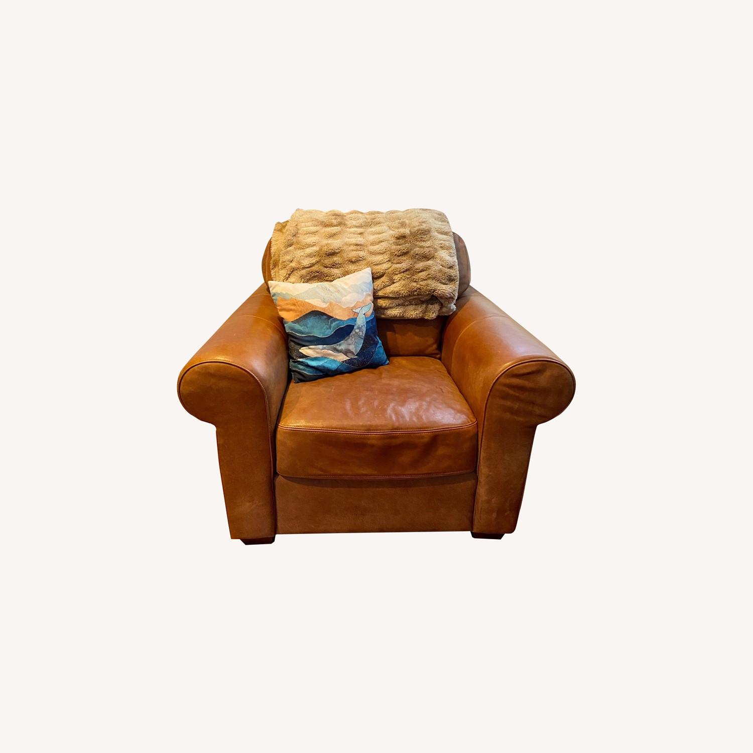 Seller's Notes:This beautiful, comfortable leather arm chair is perfect for those Sunday mornings spent reading with a cup of coffee. See the matching sofa!