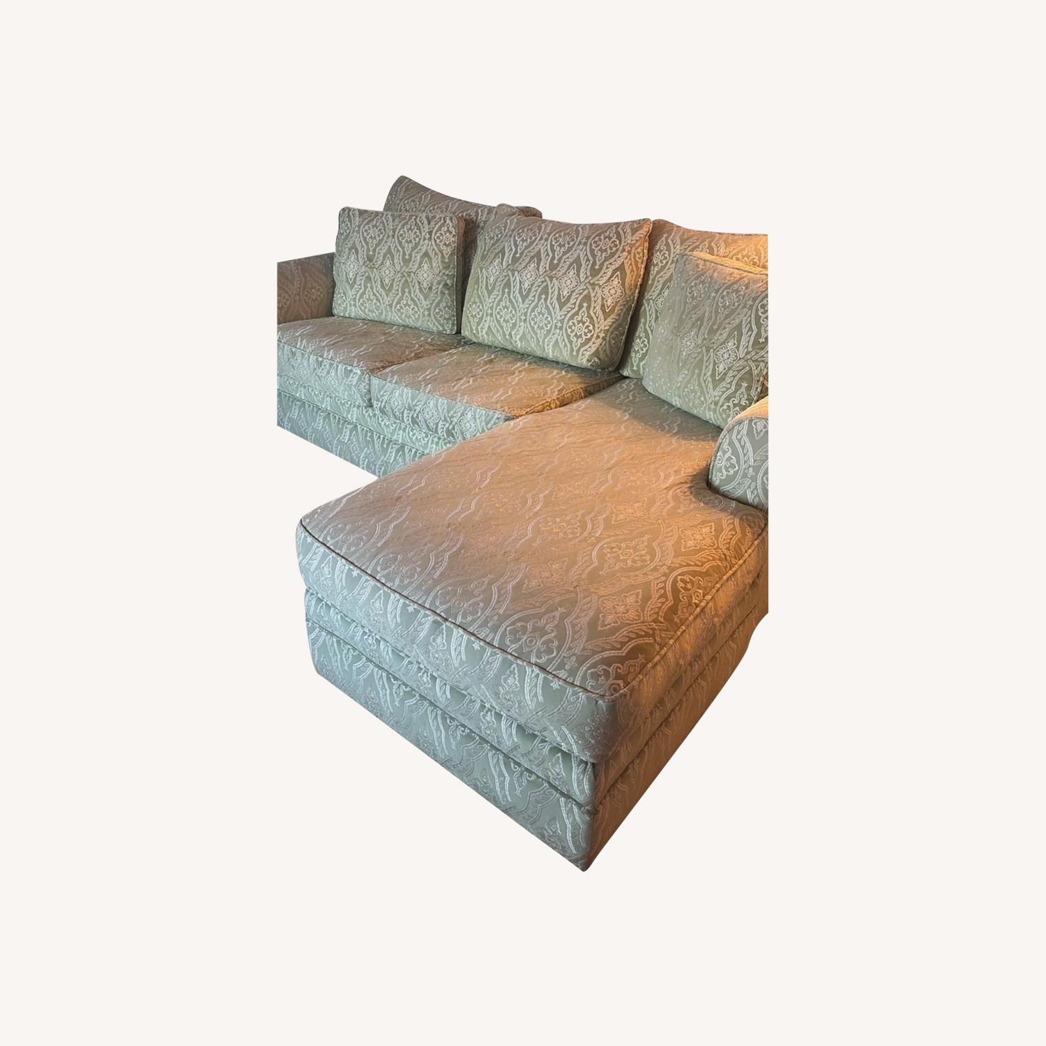 Seller's Notes:Sectional sofa with chaise lounge – Soft, comfortable cushions with a modern design. Upholstery is clean and well-maintained, no rips or stains. Dimensions: 83” L x 38” W x 16” H.