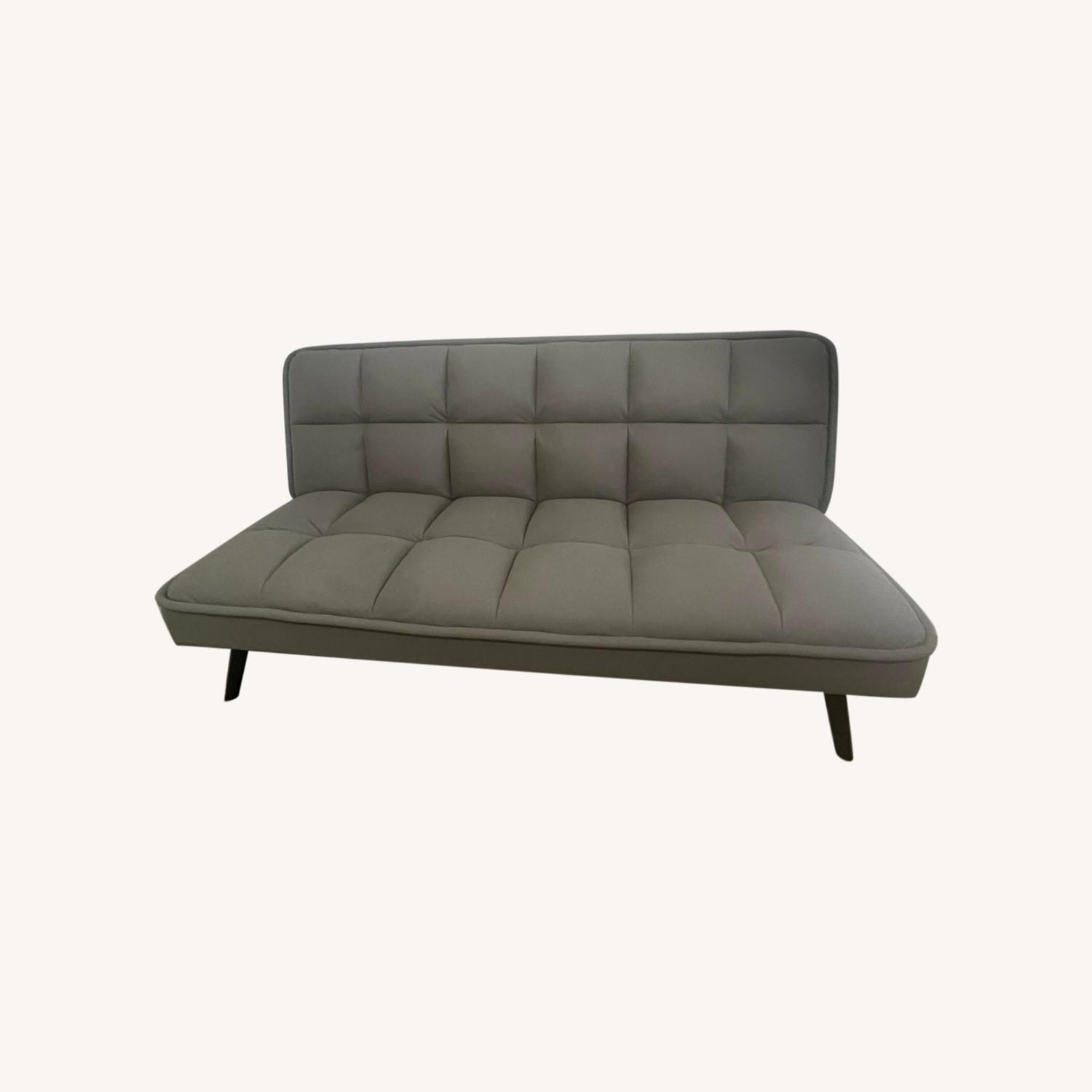 Seller's Notes:This futon easily converts into a comfy bed! It has a stylish quilted look that offers great cushioning when sitting or sleeping. Has some visible ink marks and discoloration that is barely noticeable - can easily be scrubbed off with faux leather cleaner. Being sold due to long-distance move.