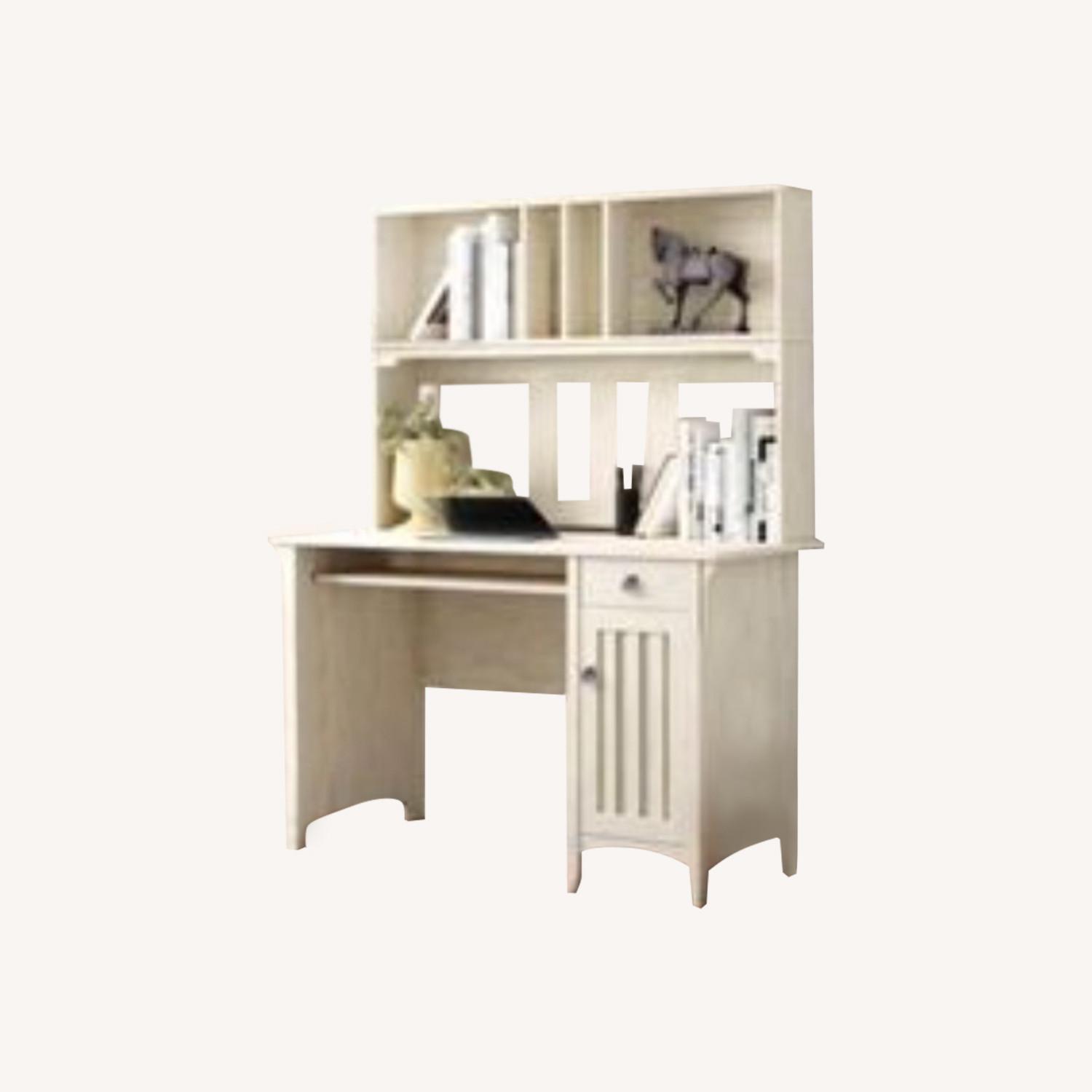 Seller's Notes:Computer Desk with Hutch in Antique White and Whites 6 Cube Bookcase Organizer, Antique White In good condition