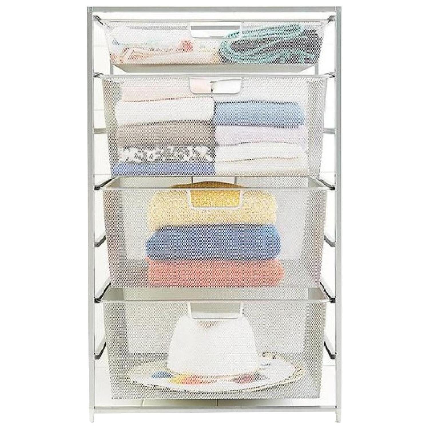 Seller's Notes:Platinum Elfa Mesh Stack A Shelf from the Container Store All purpose storage for kitchen, closet or office you can put it inside a closet for more storage space or anywhere you need additional drawers. It's quite portable to move from room to room or from one house to another