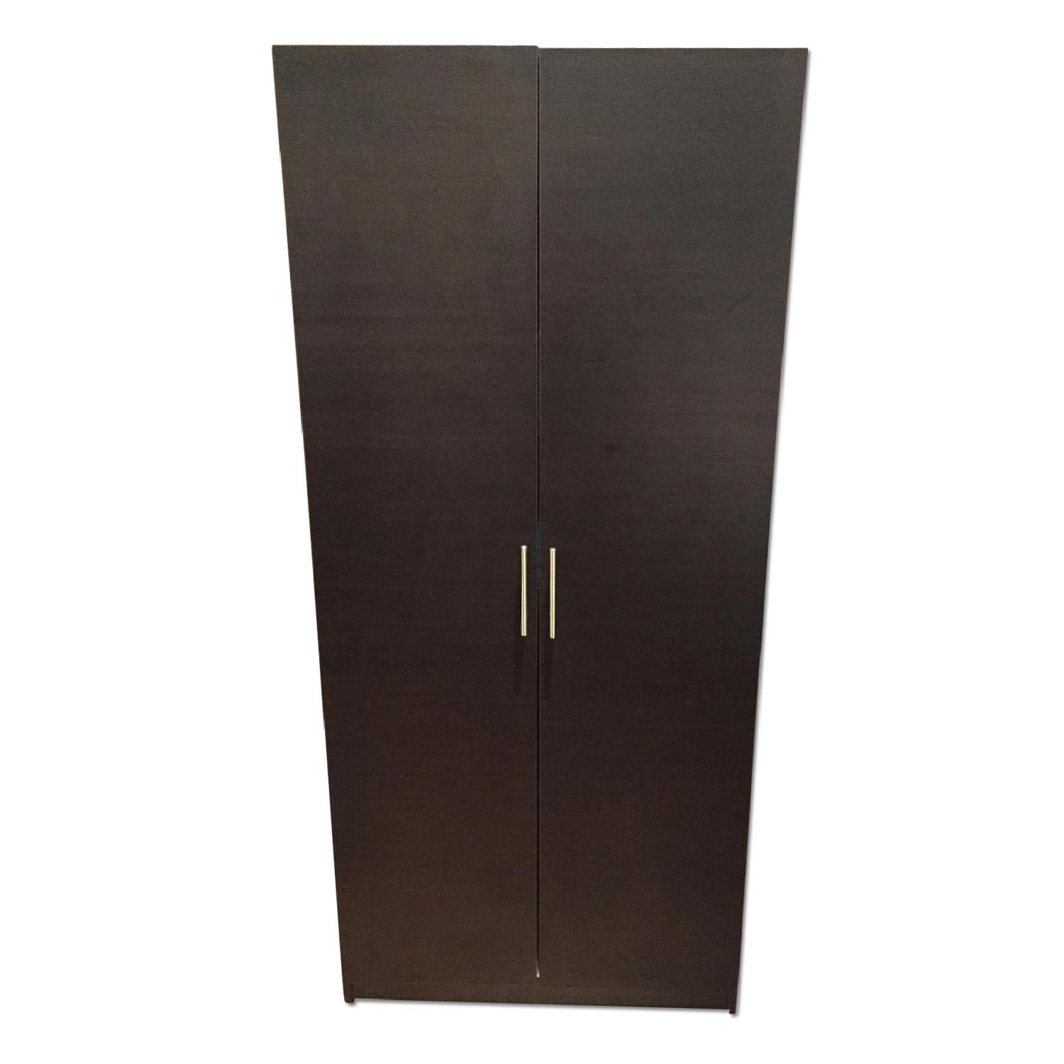 Seller's Notes:This freestanding wardrobe is the perfect solution to apartments or homes with limited closet space! Full closet rack at the top with abundant space below for additional storage. The wood is Black Zebrano Matte and the photos don't do it justice. The piece has no scratches and is like brand new. Only selling because of moving.