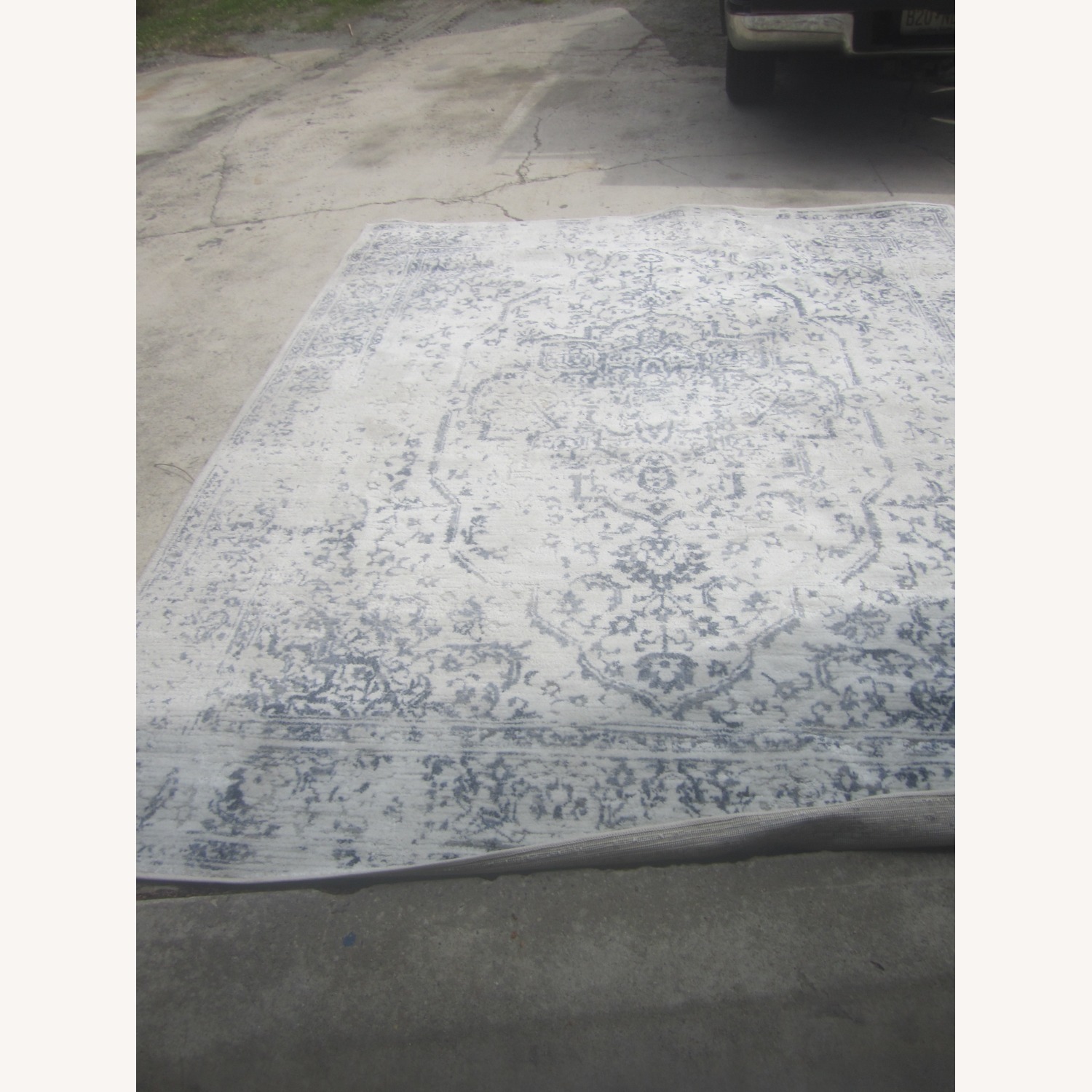 Seller's Notes: DISTRESSED STYLE AREA RUG, CREAM & BLUE, 10' X 8' AREA RUG 10' X 8' DISTRESSED STYLE WITH CREAM BACKGROUND AND BLUE DESIGNS UNIQUE LOOKING RUG GOOD USED CONDITION COULD USE A CLEAN NORMAL WEAR OFFERS WELCOME OBO BOX 76 RUGS NB 12-31-25 BARN PLEASE NOTE THIS IS A USED & OR VINTAGE ITEM. THEY ARE NOT ALWAYS PERFECT. HOWEVER, I TRY TO NOTE ANY ISSUES AND OVERALL CONDITION. THEY ARE AS FOUND CONDITION. ANY QUESTIONS ASK PRIOR TO PURCHASE AS IS NO REFUNDS OR RETURNS
