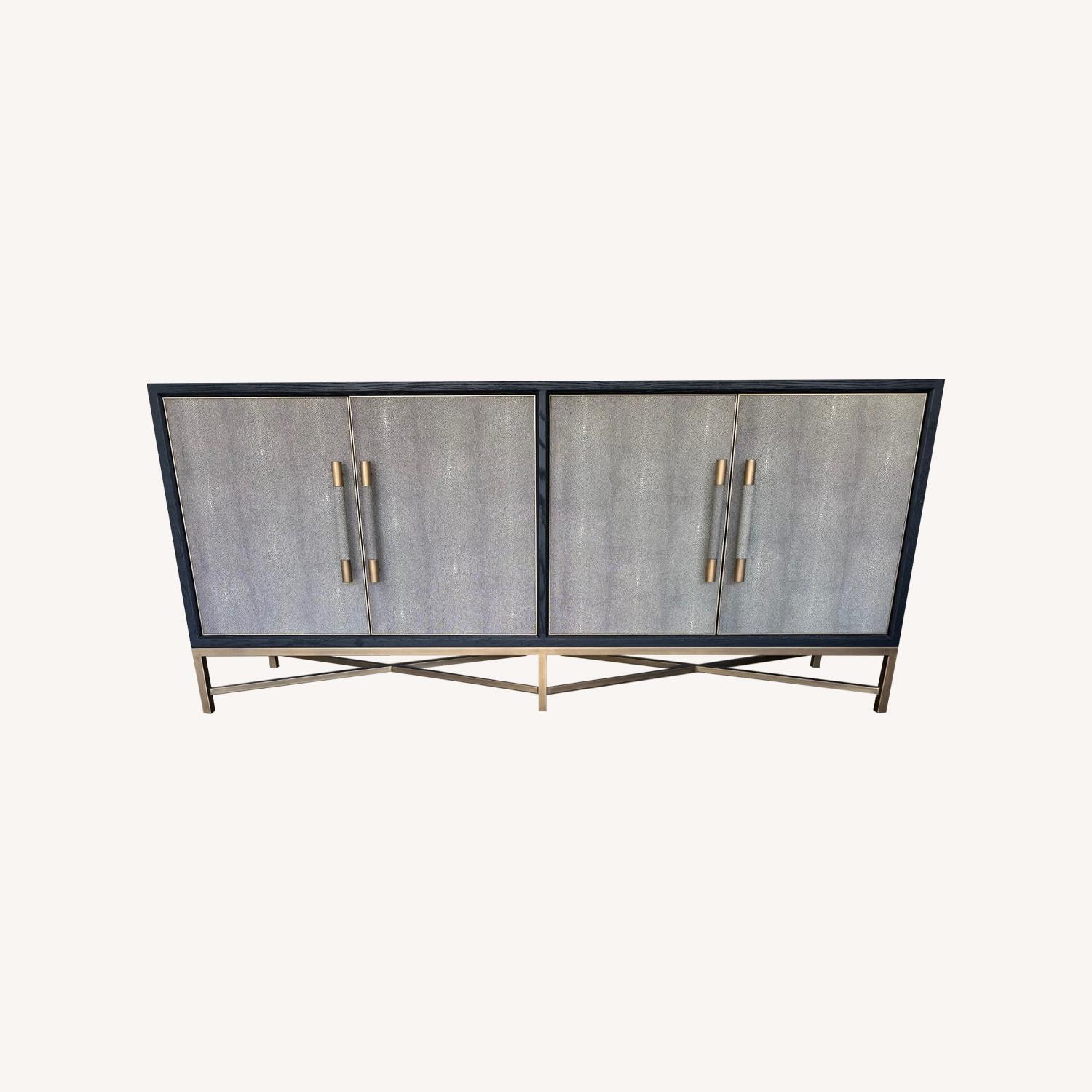 Seller's Notes:Virtually brand new contemporary shagreen sideboard with black wood frame and brass legs. My wife and I redesigned our dining room before ever really using this piece.