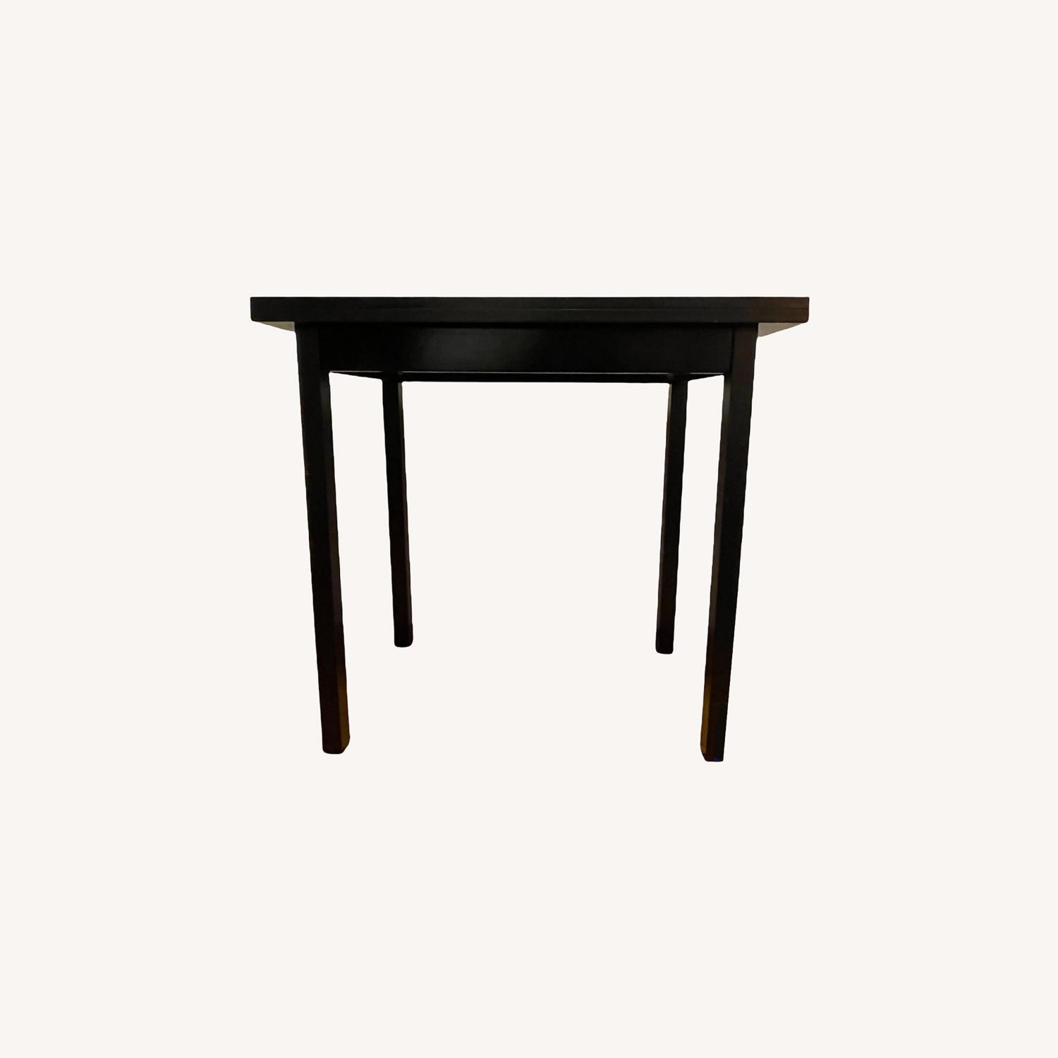 Seller's Notes:This table is great for small apartments. It opens up into a table that measures 31.5 inches wide by 35.5 inches depth from a table that measures 31.5 wide by 17.75 in depth. Easy sliding out and unfolding to the larger surface area and folds. back easily to the smaller surface area. There are no surface scratches when opened but there are some on the top when closed. Great for entertaining as you can add more space for snacks and drinks.