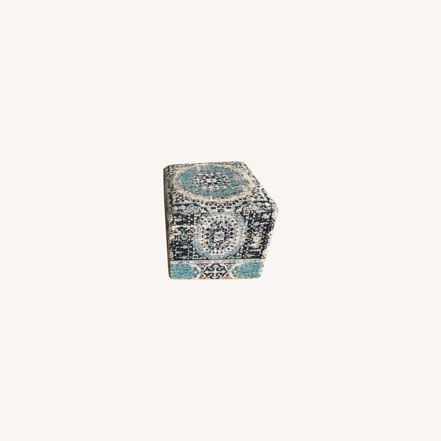 Seller's Notes:I had those Poufs in my living loom for less than five months. They are in excellent condition. The Fabric is clean, no stains or odor. We are a shoe and pet free home. It's a cube padded silhouette that can serve as a nightstand or an end table as well. I would also dare to have them as a coffee table in a more relaxed and bohemian style.