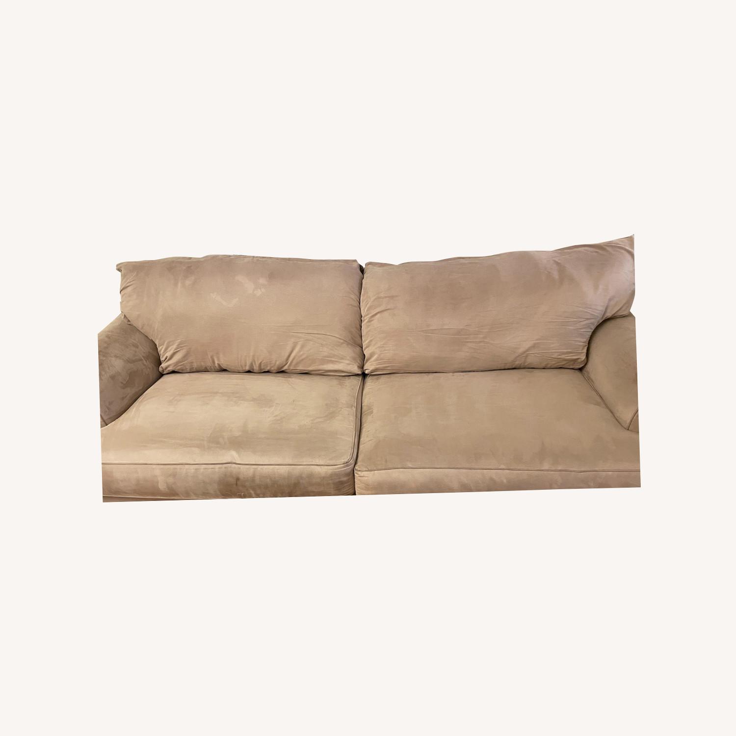 Seller's Notes:Upgraded couch, but hoping to offload! Sofa has more time for sitting / sleeping (in the three days prior to listing, I have napped twice). Cushions are getting a bit lumpier over time but still very comfy because they are plush. Microsuede material is comfy. Couch cushions have gone through laundry + dryer with no problems. Minor water marks and dust marks in the back corner, but I think most if not all can be completed cleaned off. No pets, no smoking.